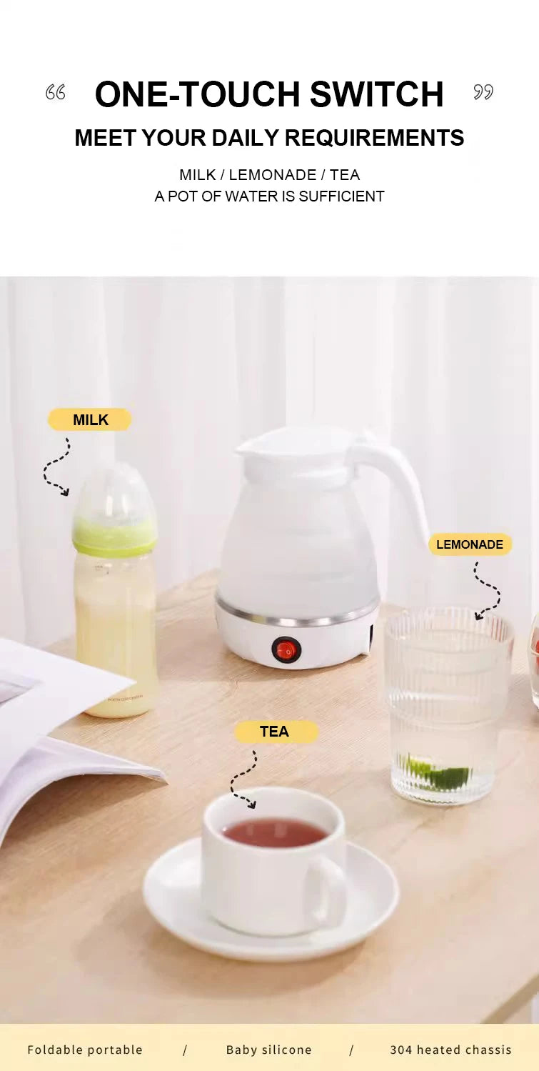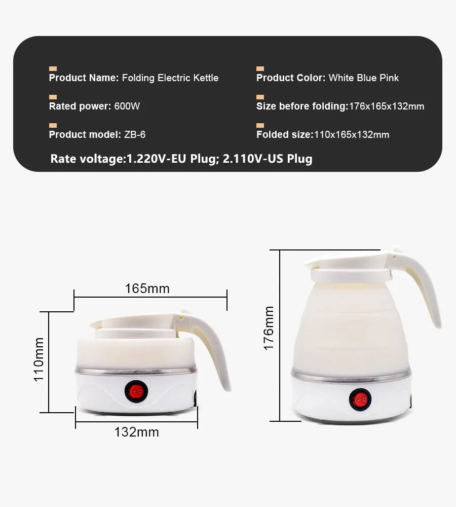 0.6L Mini Folding Kettle Portable Water Heater 600W Silicone Compression Electric Kettle