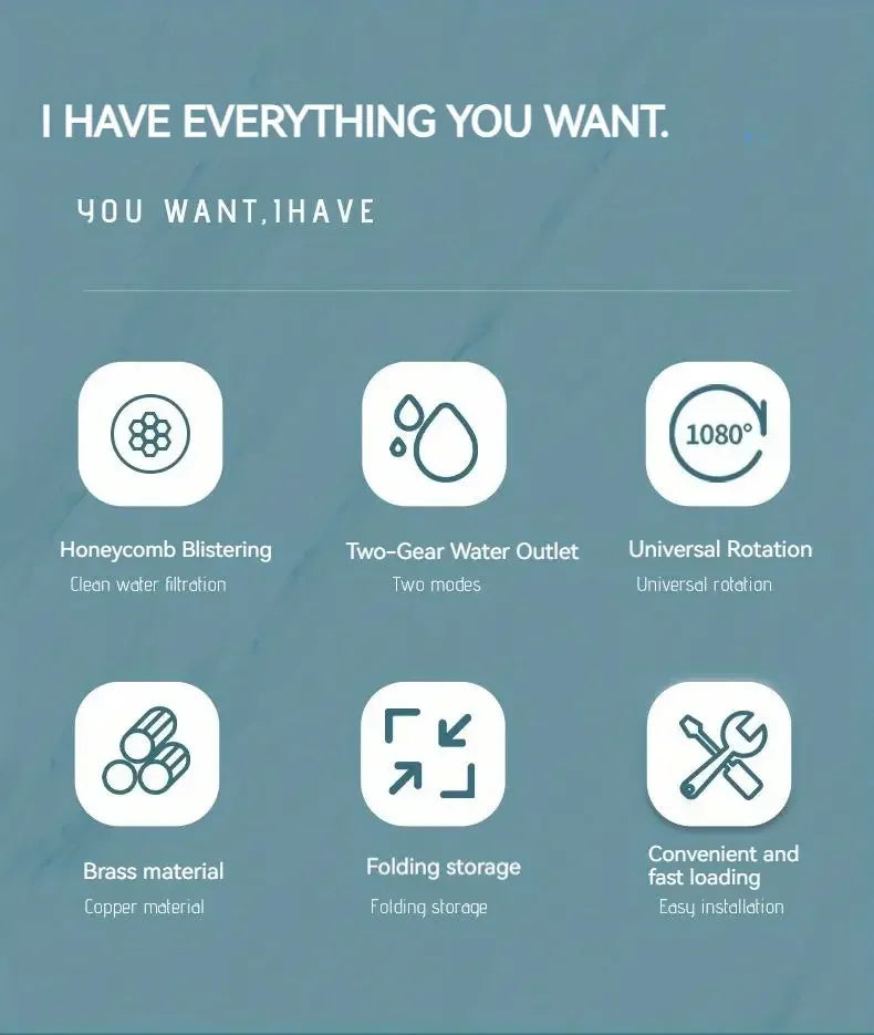 The splash-proof filter faucet adopts a movable metal arm design and can be adjusted 360 degrees in all directions. Every corner of the sink can be reached for easy cleaning. It can be rotated at will, which perfectly solves the troubles caused by the unreasonable design of the sink and the original faucet.