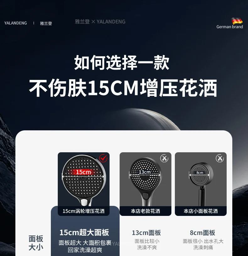 15CM Big Panel High Pressure Shower Head With Filter 3 Modes