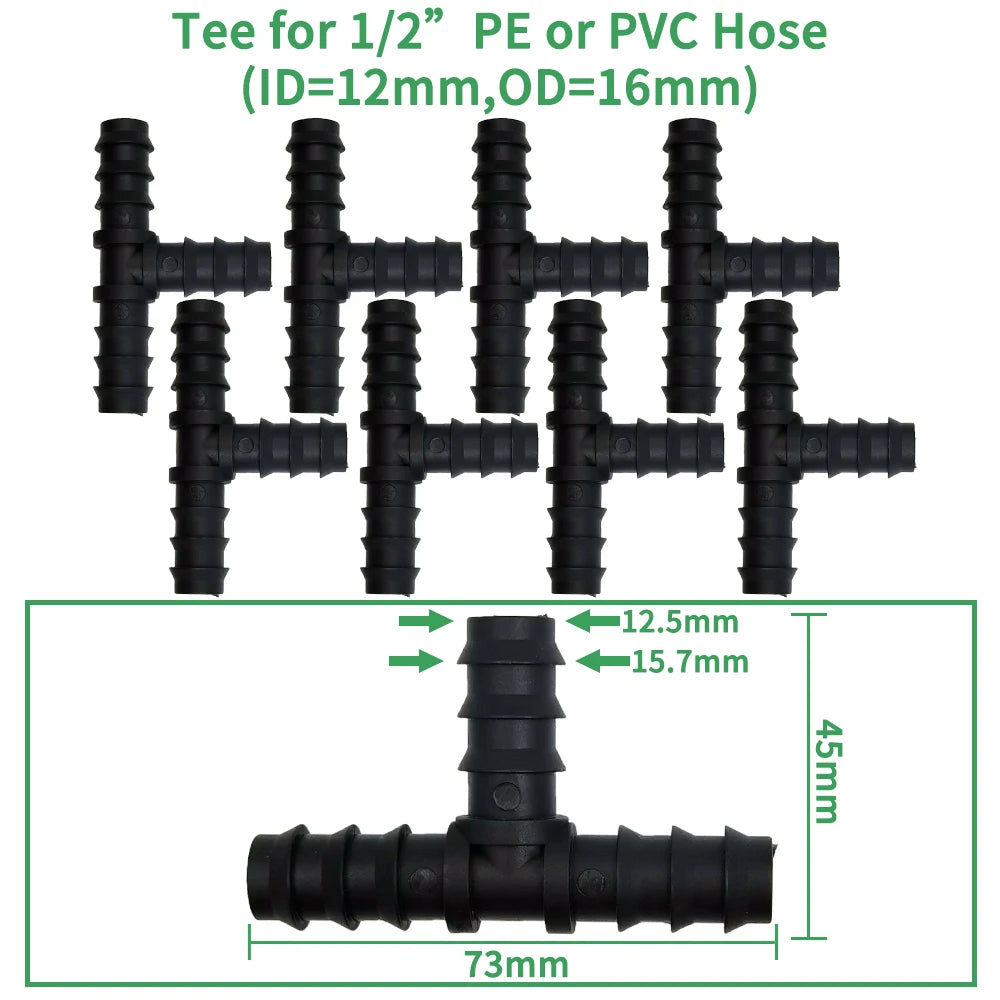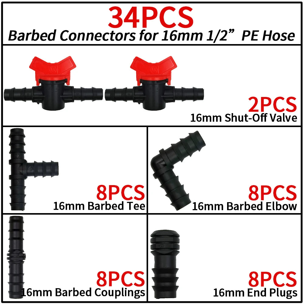 34Pcs 1/2" Drip Irrigation Fittings Kit Straight Tee Elbow Plug For 1/2 Inch 16mm Tubing Garden Watering Hose Connect