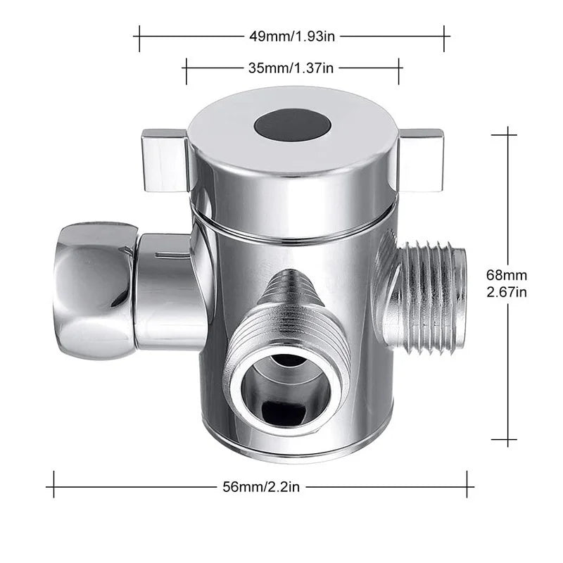 Shower Head Diverter Valve - 1/2" Three Way.(1 in 2 out)