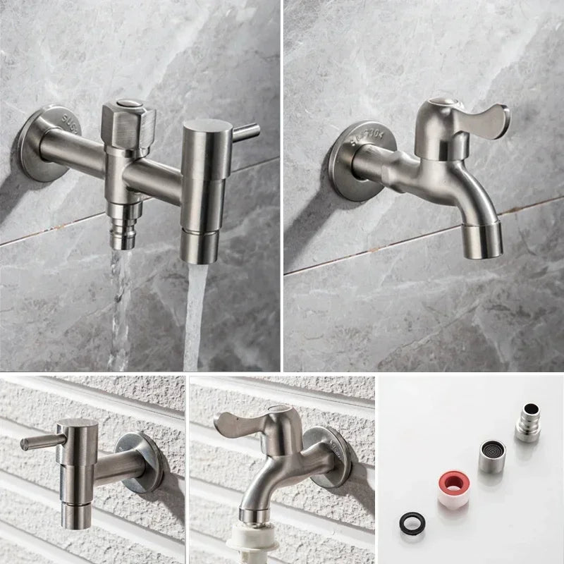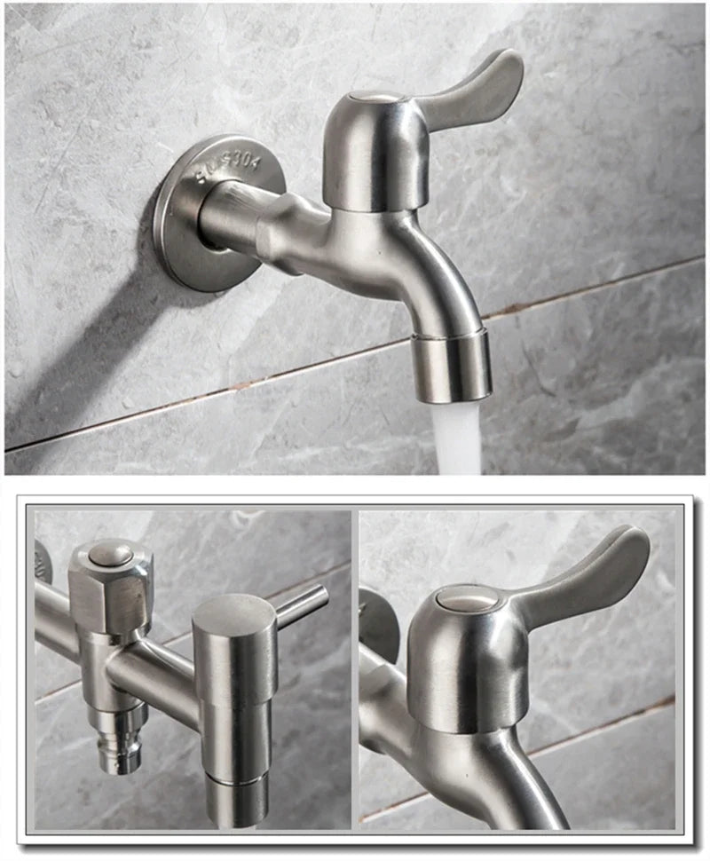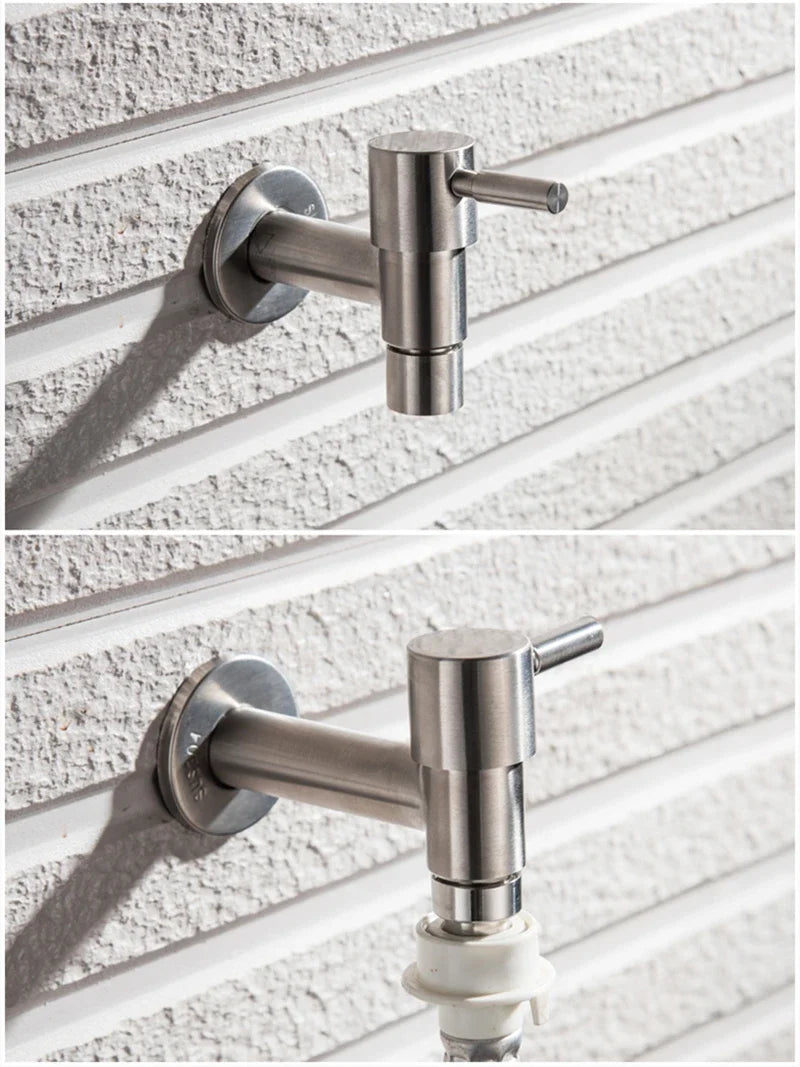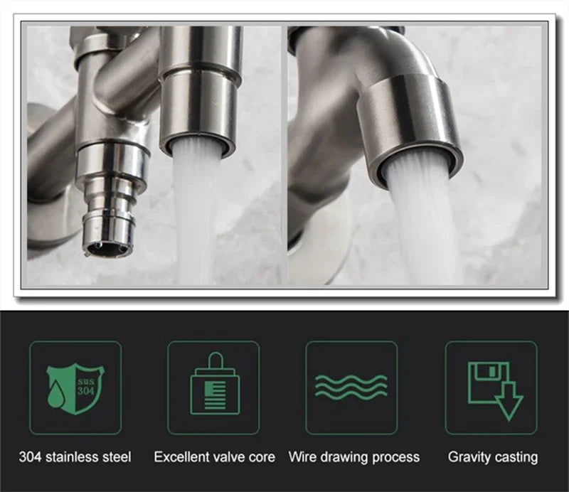 Brushed Outdoor304 Stainless Steel Garden Faucet Wall Mounted Bibcock Garden Wash Basin
