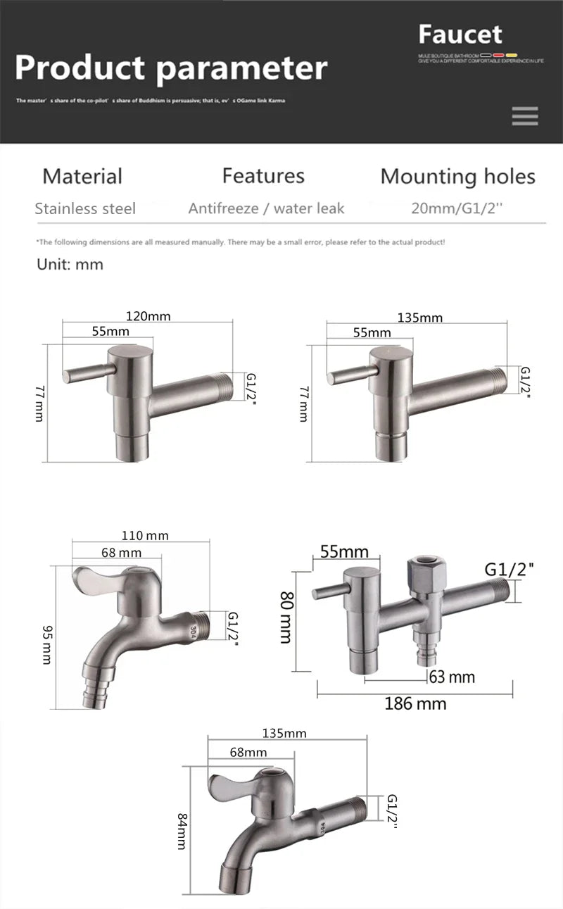 Faucet body material: 304 stainless steel