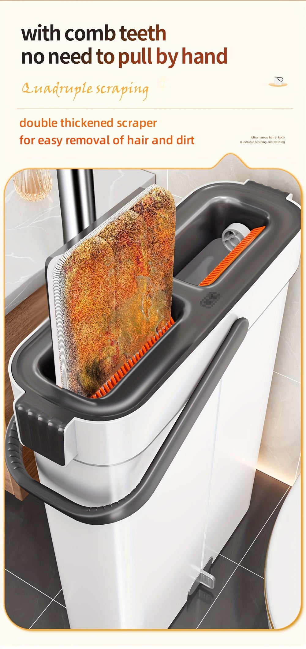 Complete cleaning system with mop and bucket, hands-free household dusting flat mop, dry and wet separation bucket, comes with 3 washable and reusable microfiber cloths