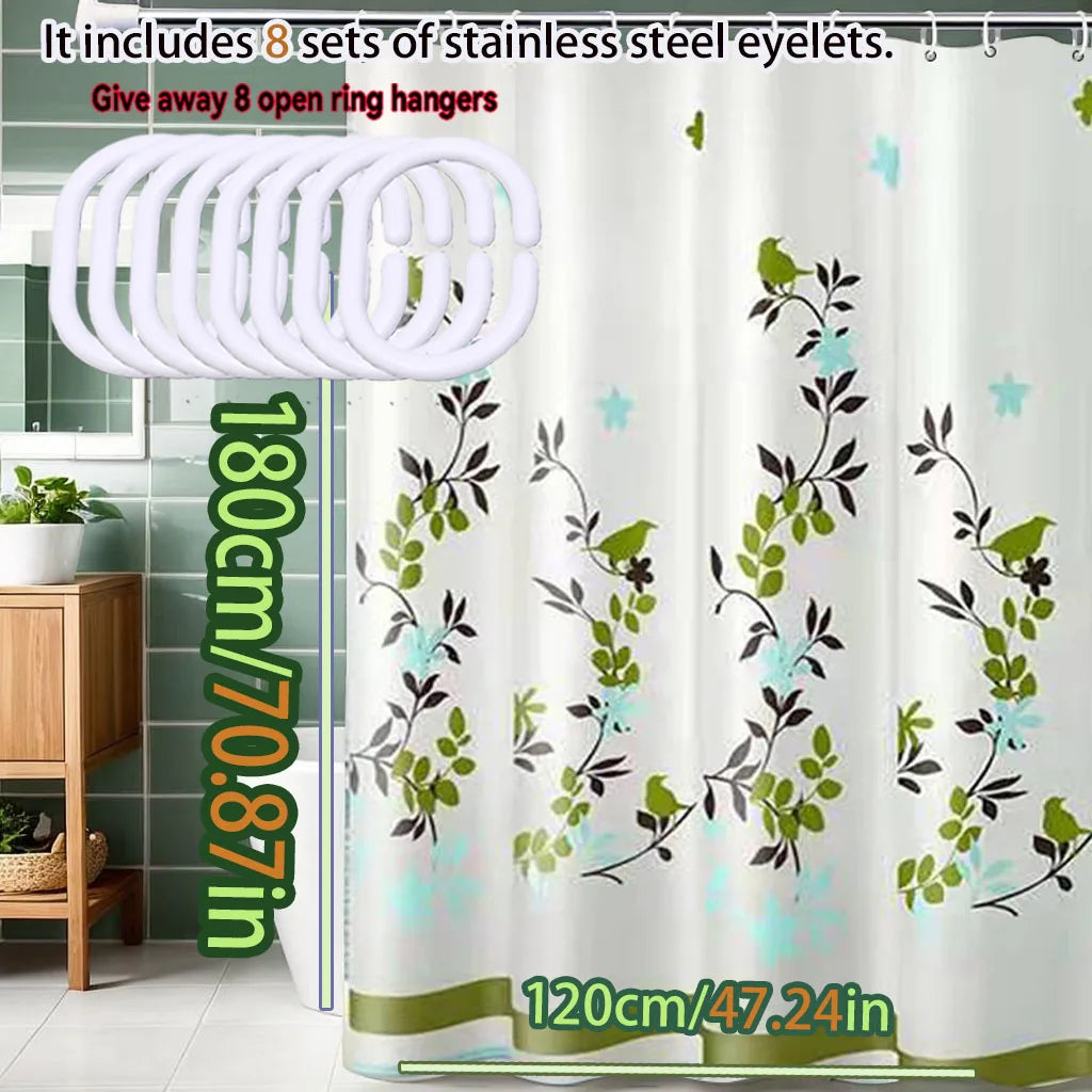 Green bird perch printed shower curtain bathroom dry and wet separation partition curtain