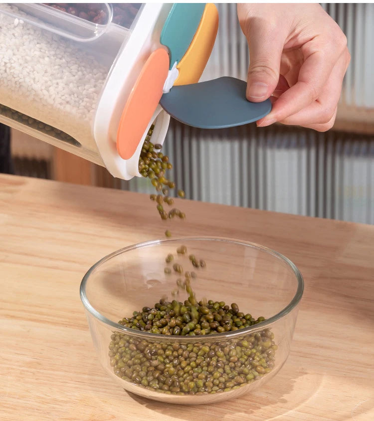 Kitchen Cereals Storage Box Plastic 4 grids ,Food Container Moisture-proof