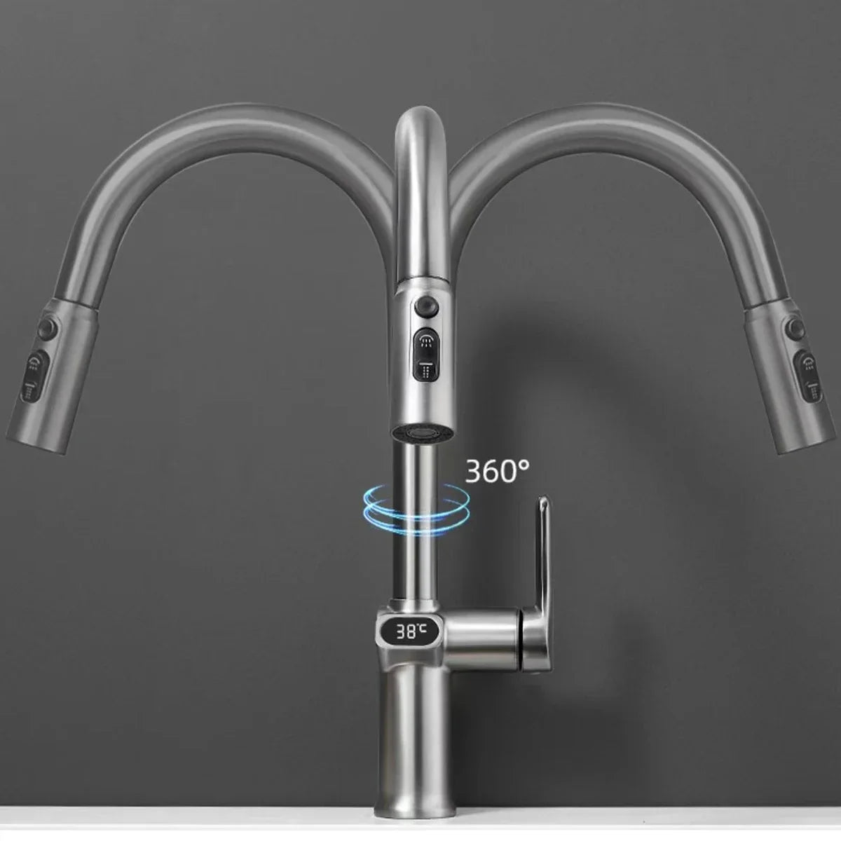 Kitchen Faucet Temperature, Pull Out Kitchen Sink Faucet Digital Display Function Rotatable