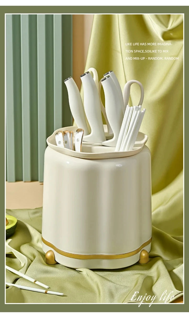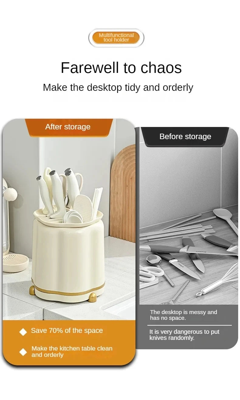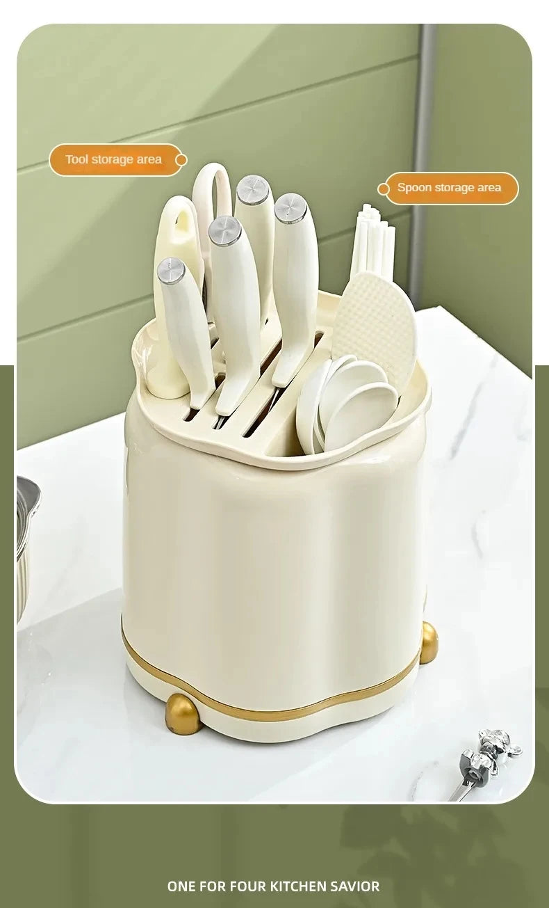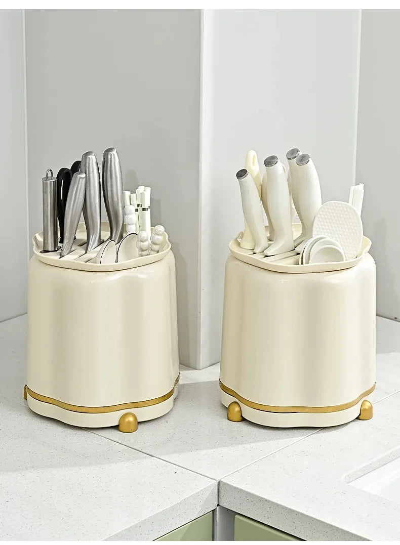 Kitchen Rotary Storage Knife Holder Cream Wind Multifunctional Storage Tool Holder Issued for Home Storage