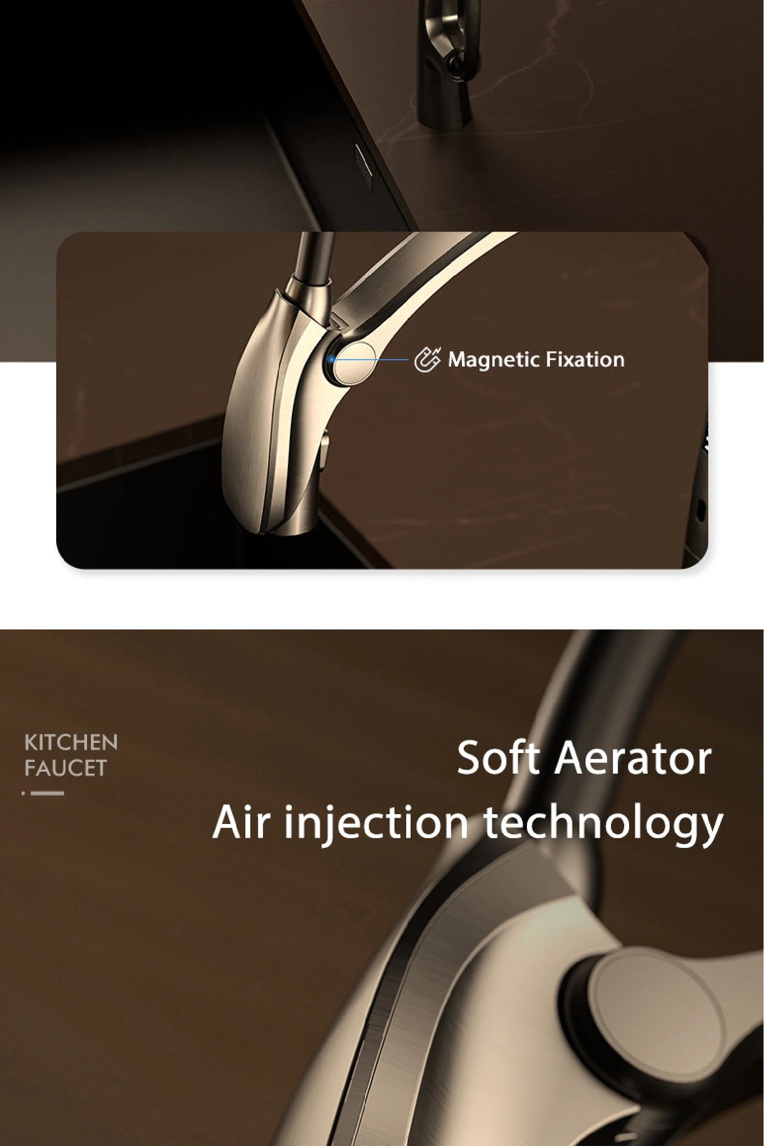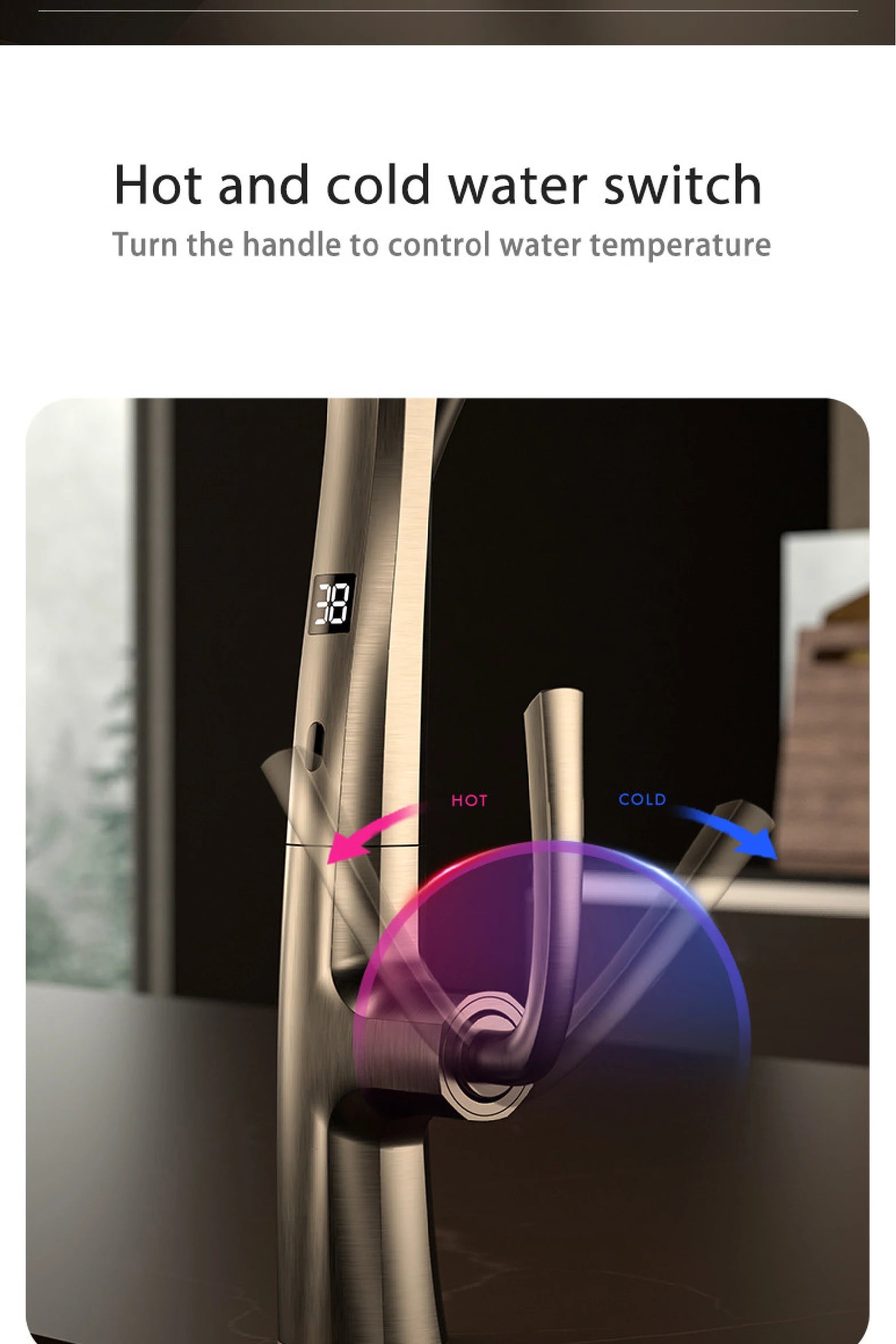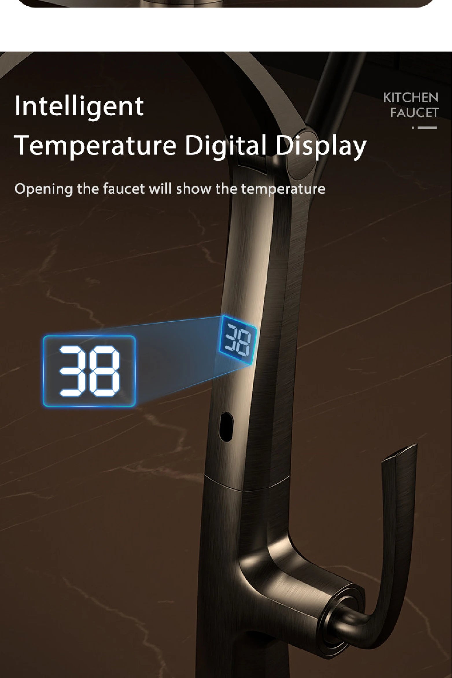 Luxury brass gun gray kitchen faucet Digital display Intelligent induction magnetic suction Pull-Out design Cold & hot sink Tap