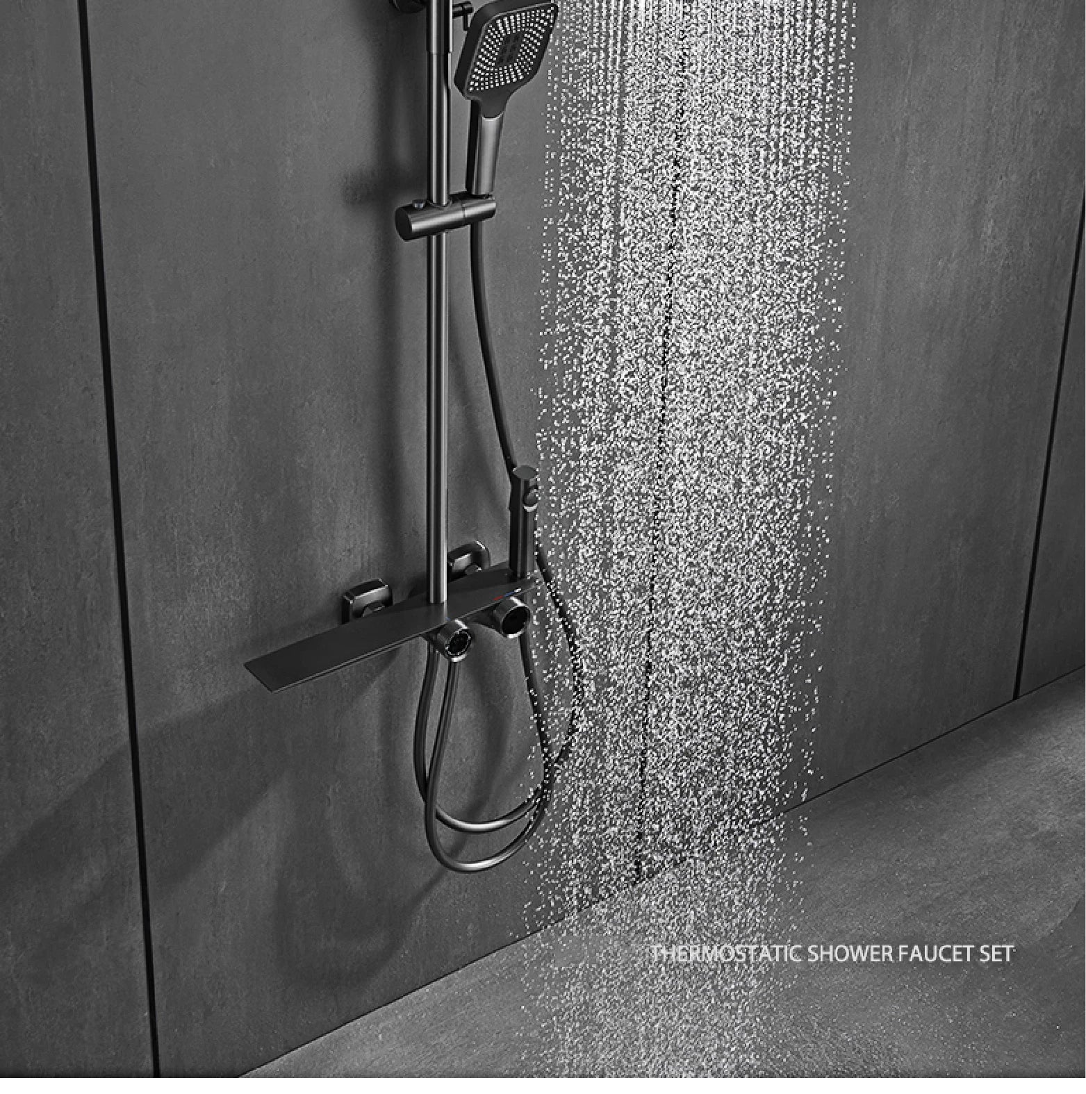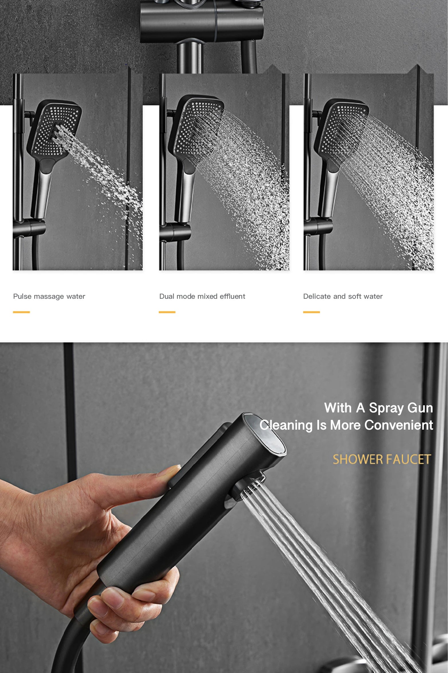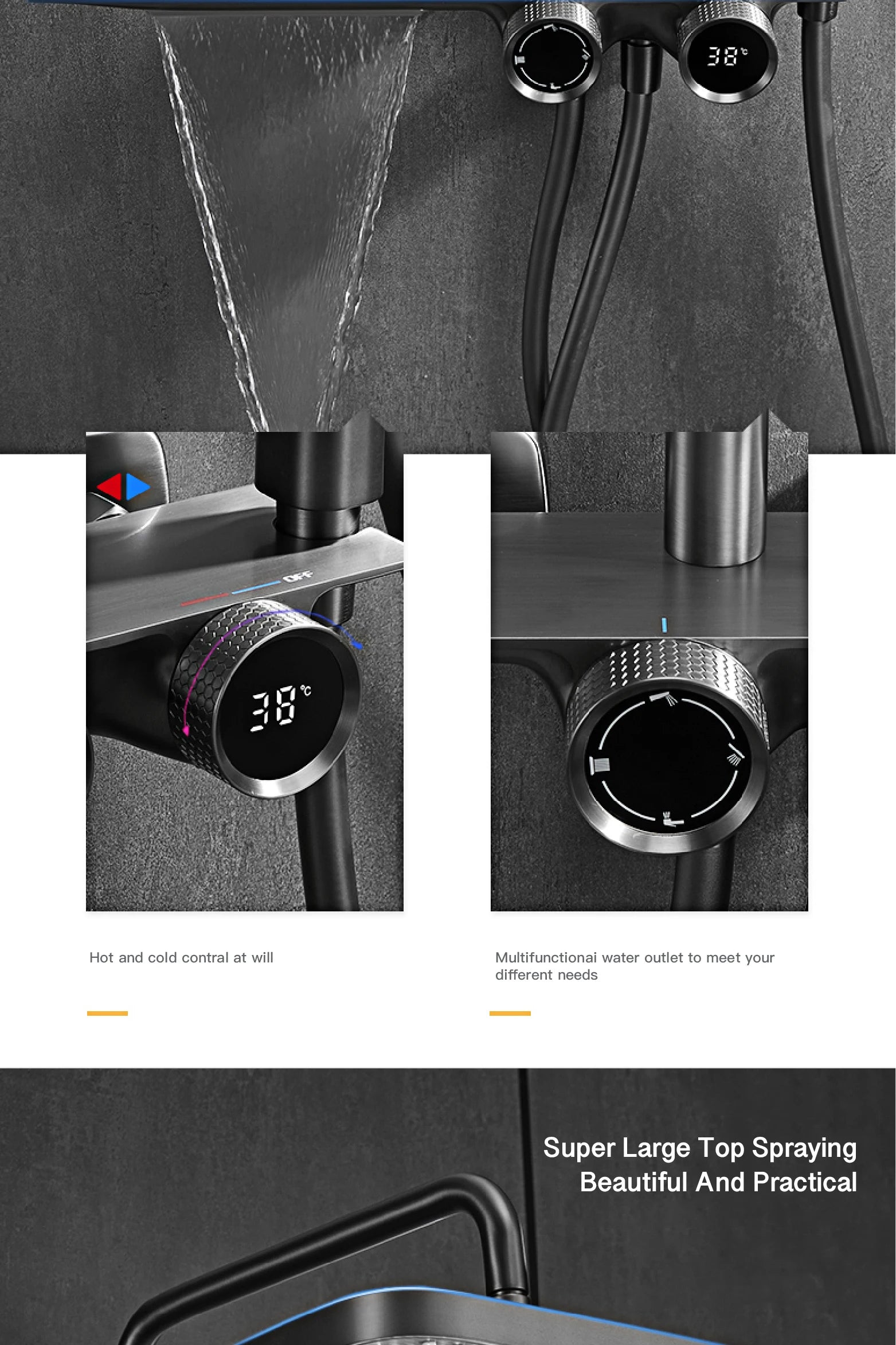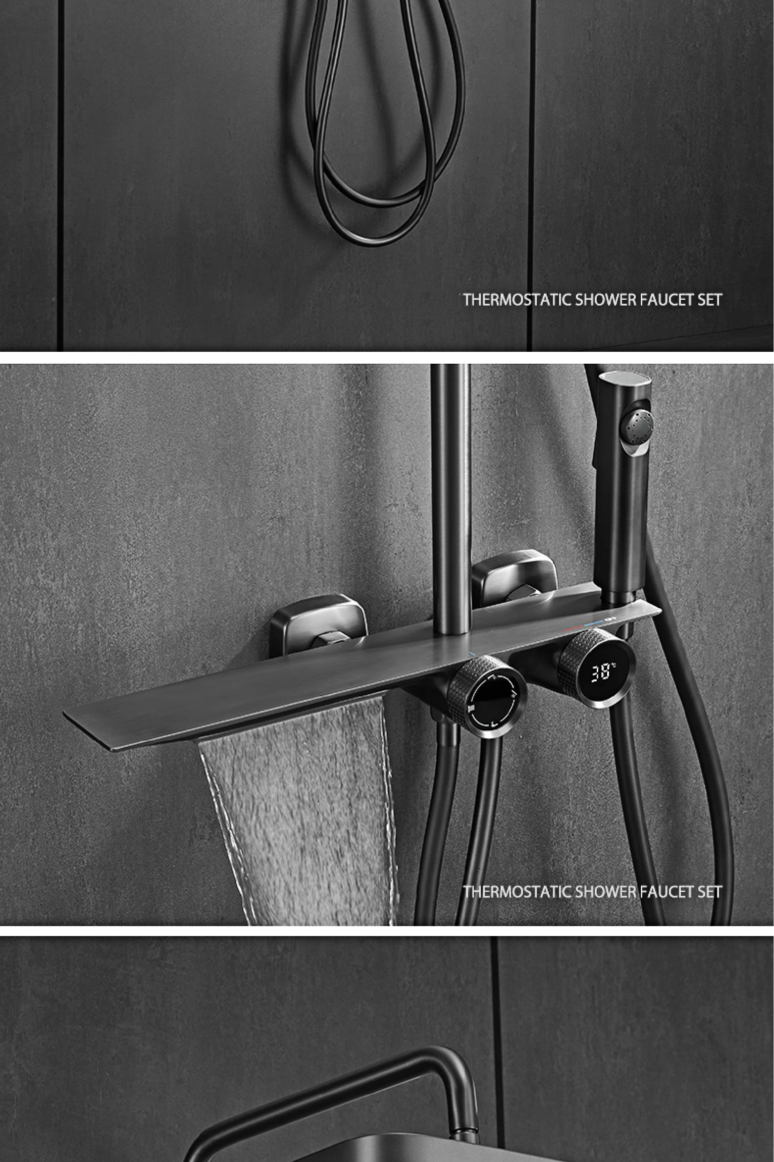 Luxury gun gray brass bathroom shower system digital display cold & hot dual control