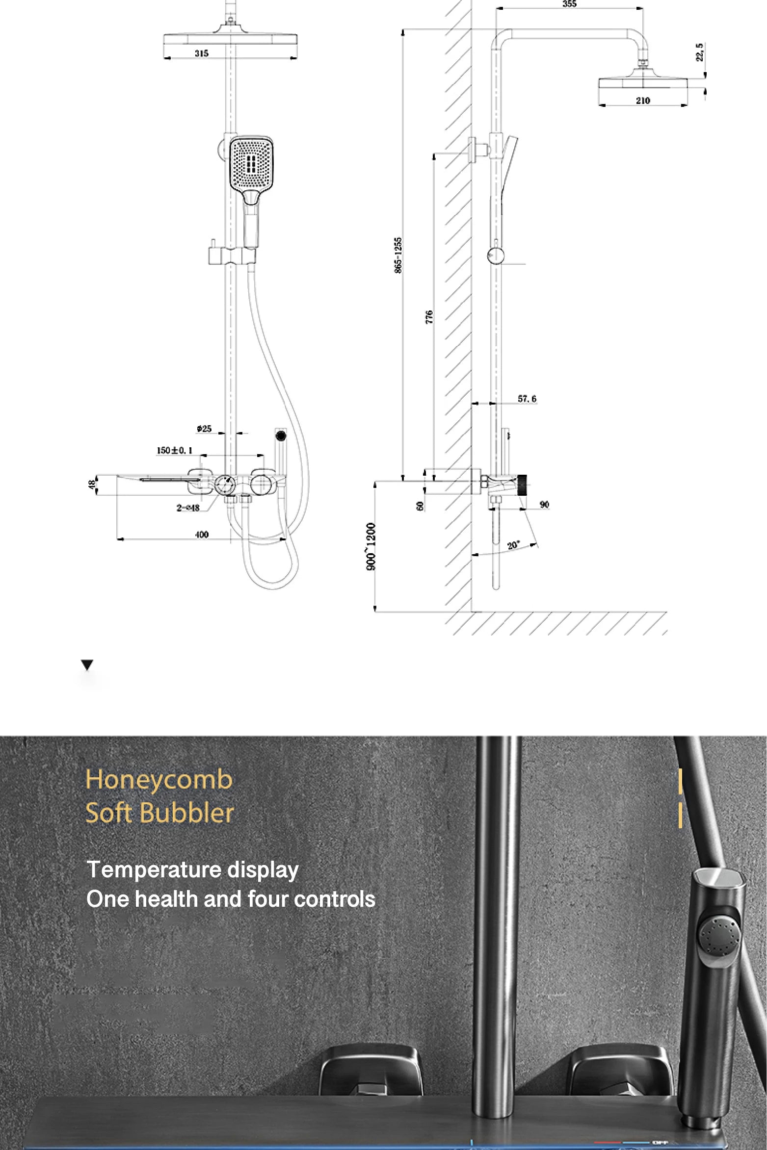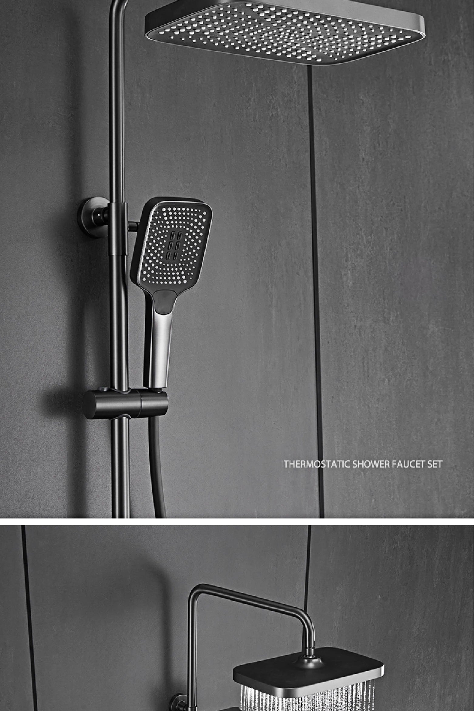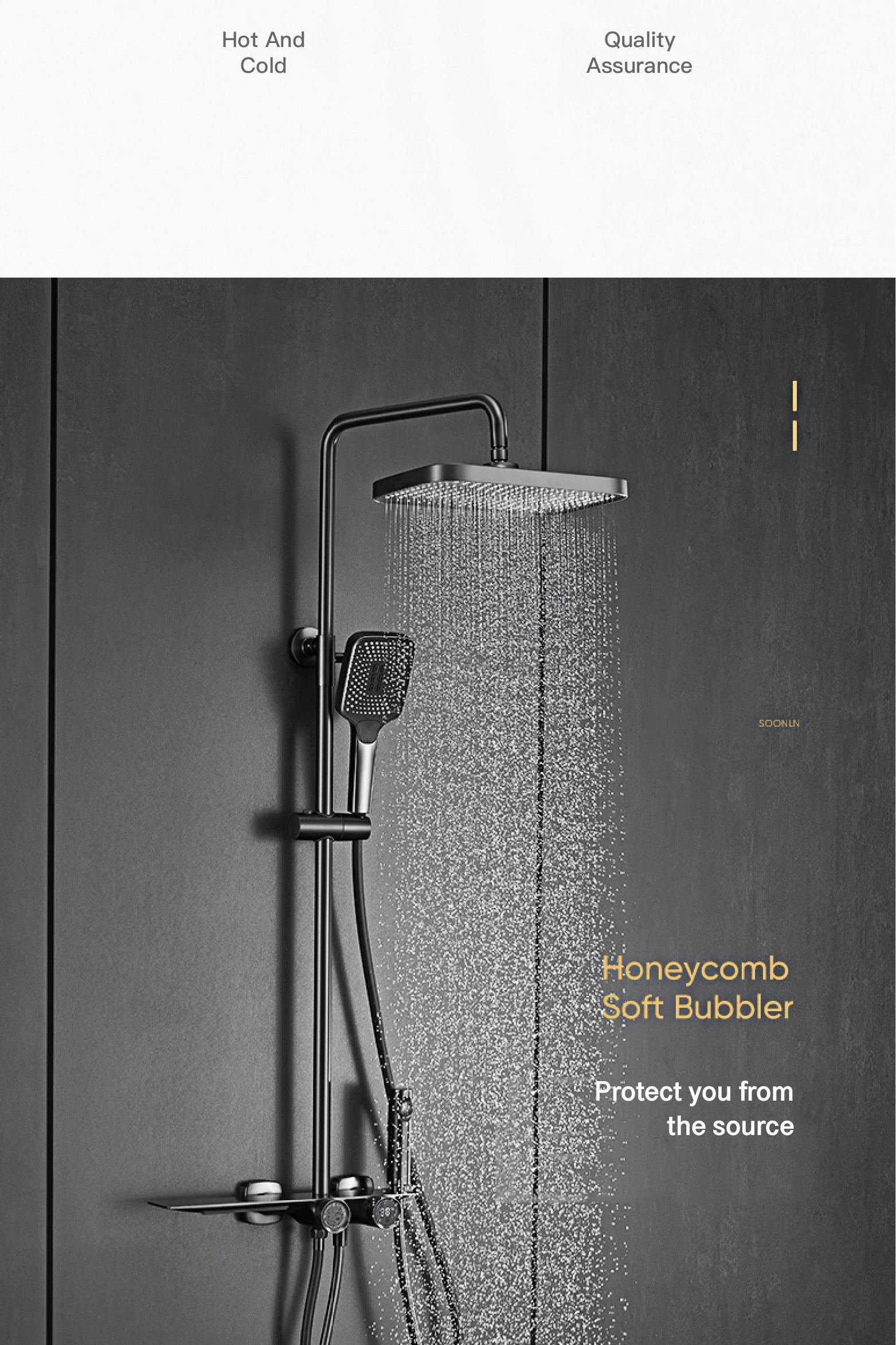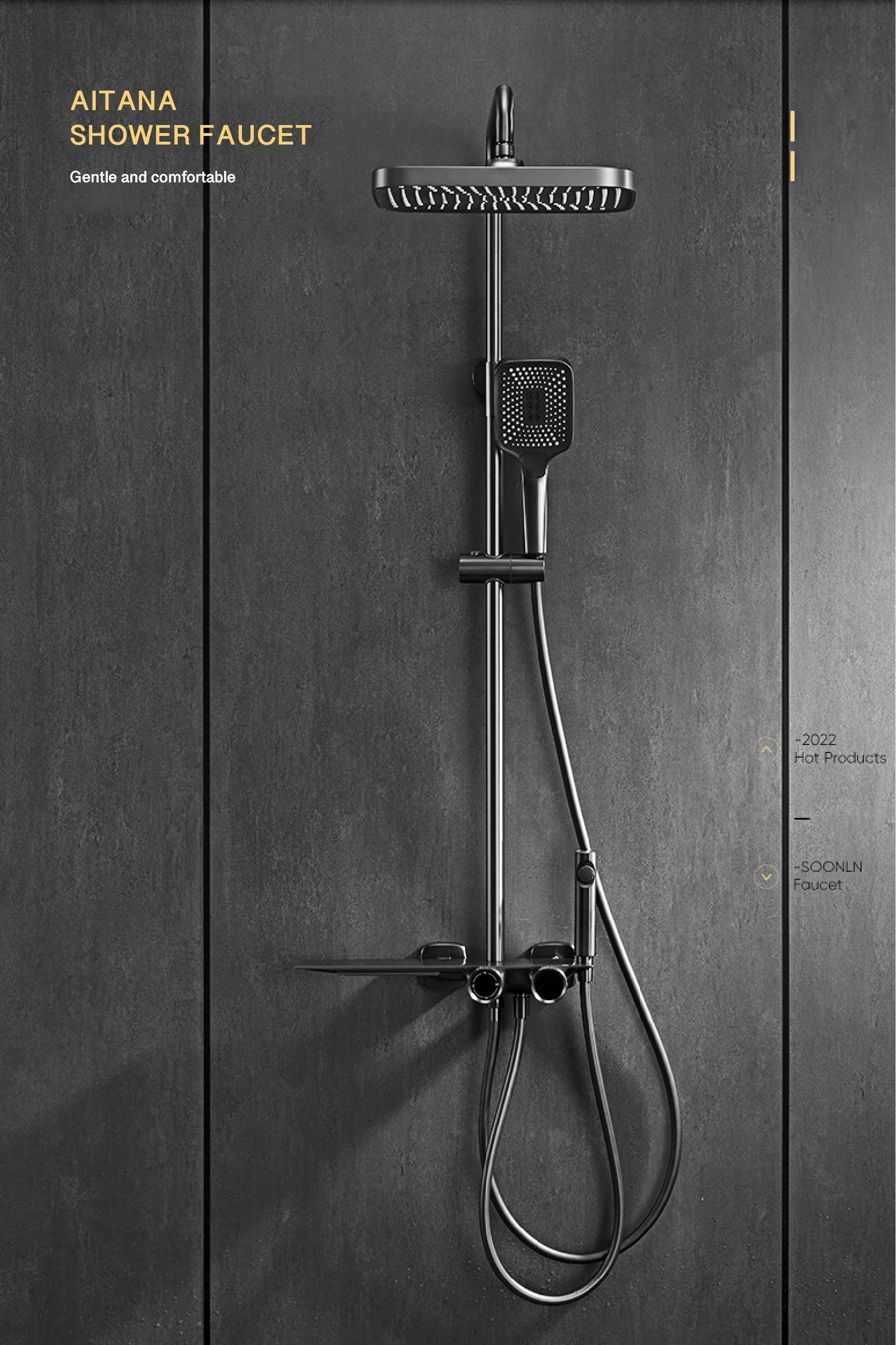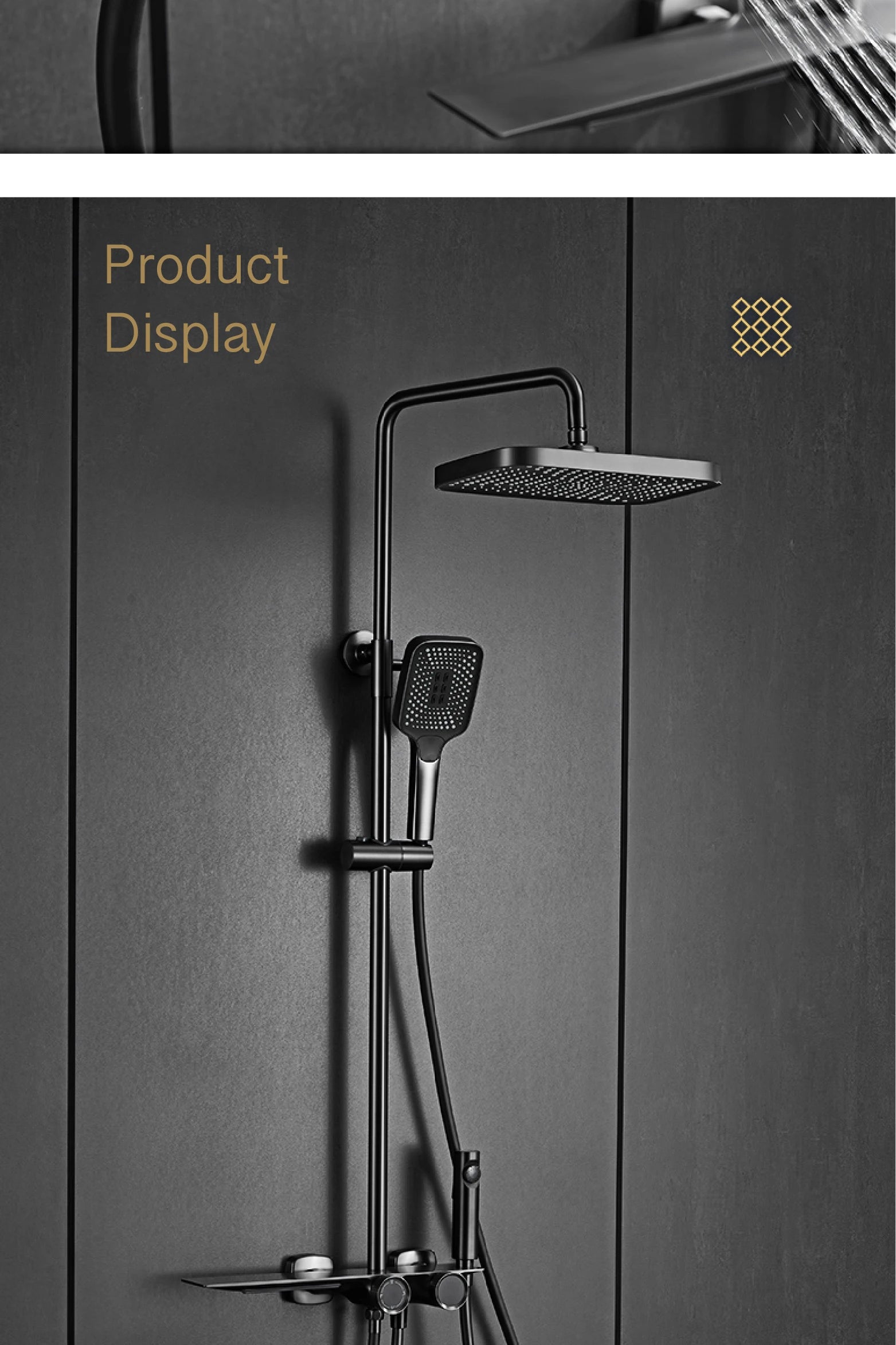 Luxury gun gray brass bathroom shower system digital display cold & hot dual control