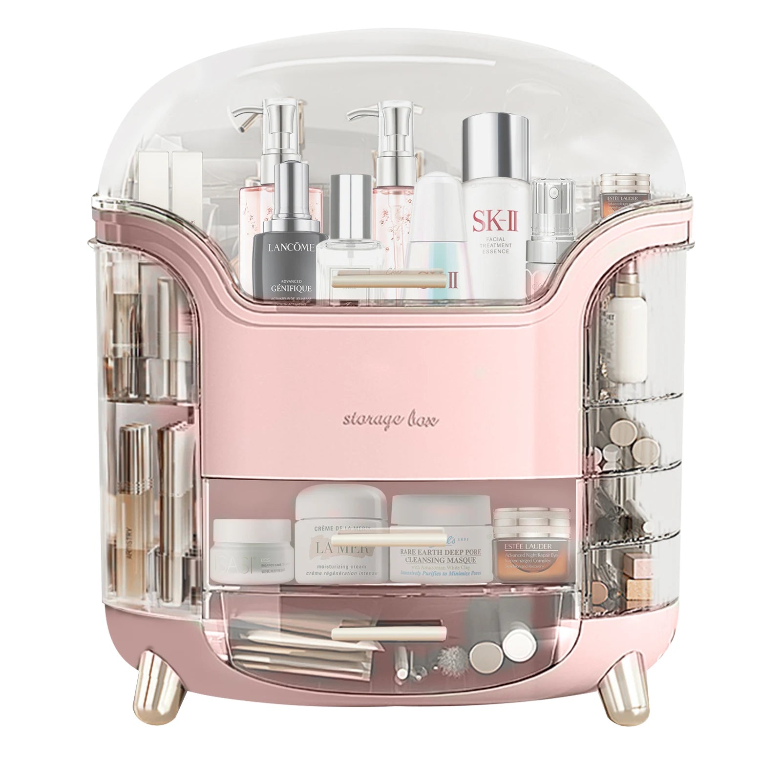 Makeup Organizer and Storage, Cosmetics Organizer Box for Countertop with Lid & Drawers, Cosmetics Skincare Organizers Box with