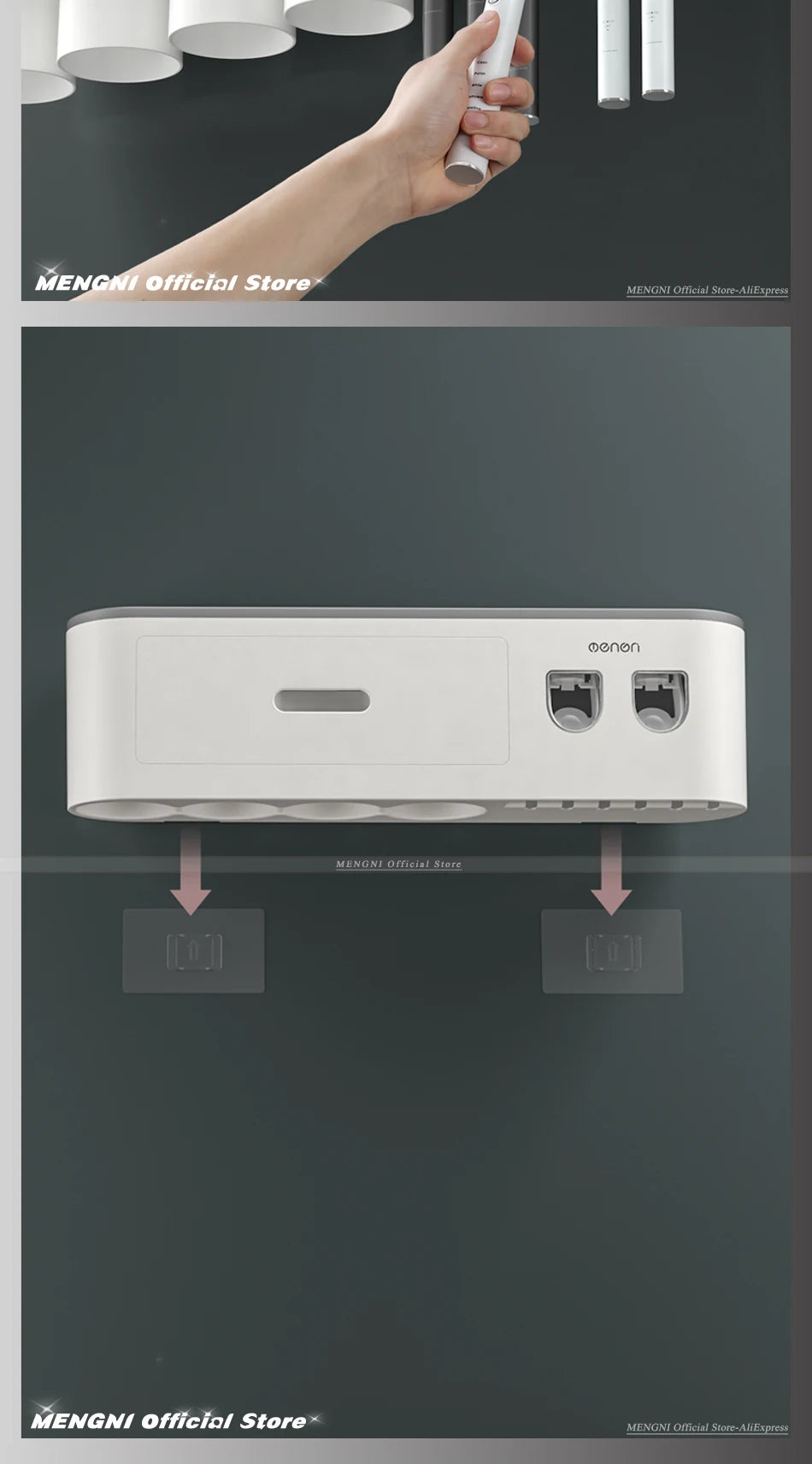 MENGNI-Magnetic Adsorption Inverted Toothbrush Holder Wall -Automatic Toothpaste Squeezer Storage Rack