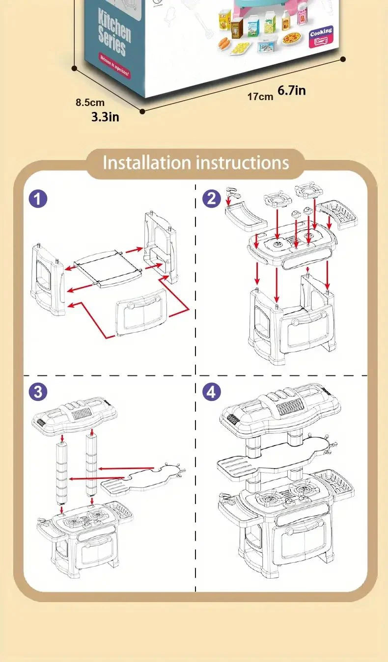 • Simulation :This toy set is a simulation of a real kitchen, allowing kids to learn about cooking and preparing food in a safe and fun way.