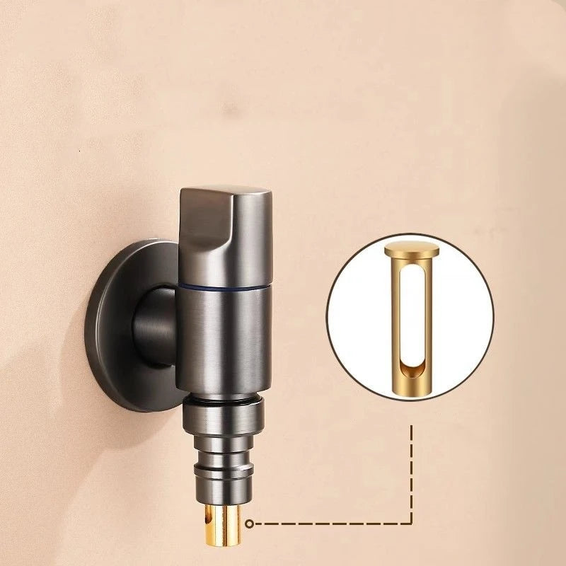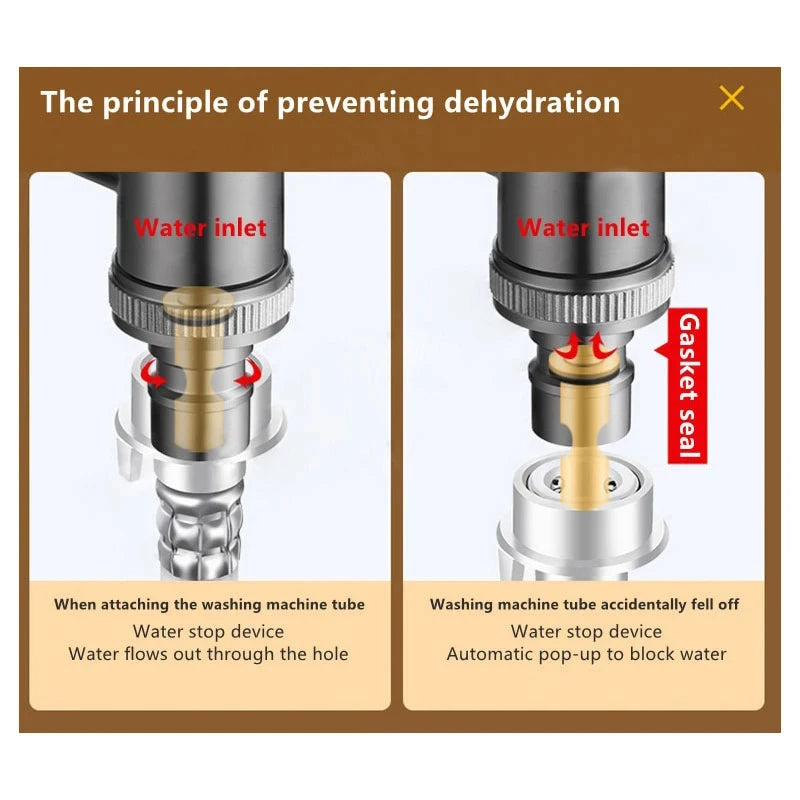 The new washing machine faucet is designed for small space, comfortable experience, and high-quality life should be like this. Beautiful appearance, does not take up space. One in one out, key control, multiple interface combination. Premium trim. The gray /black /sliver electroplating process is more advanced than the surface painting and never fades.