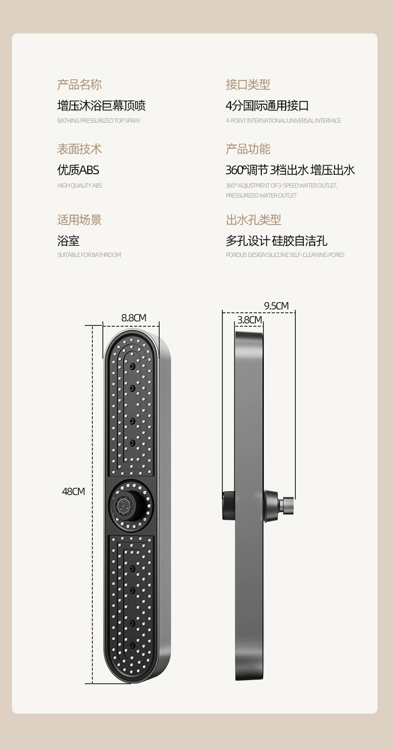 New 480mm Big Panel Showerhead 3 Mode Supercharge Rainfall Shower Head