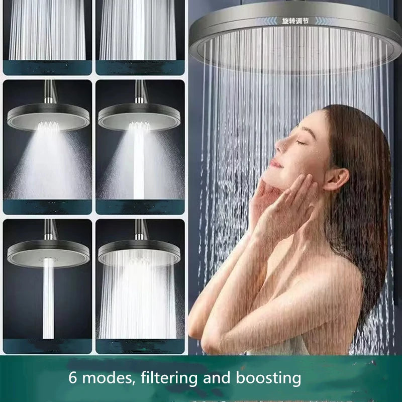 New 6 Modes Large Flow Supercharge Rainfall Shower Head 230mm Round High Pressure Top Spray Rain