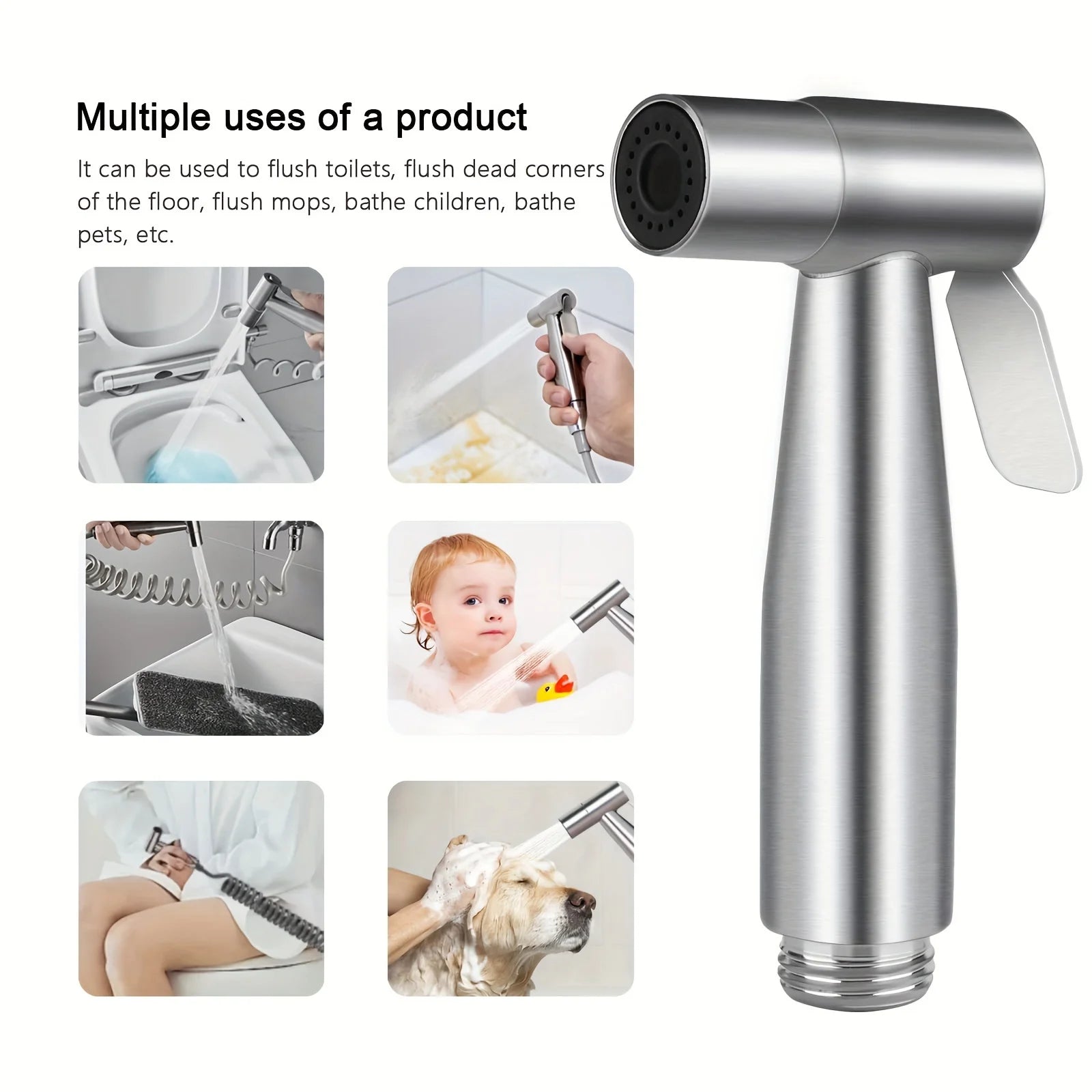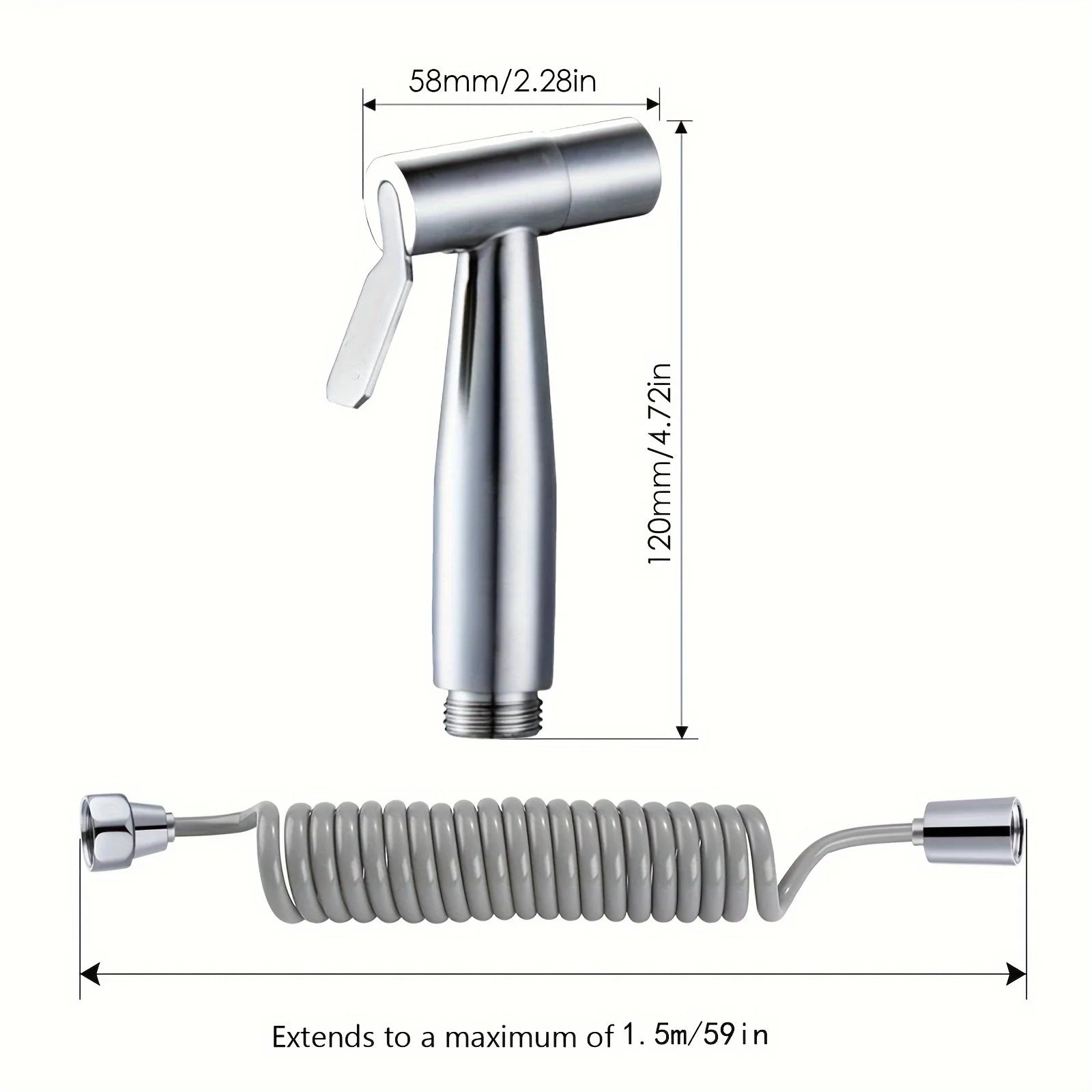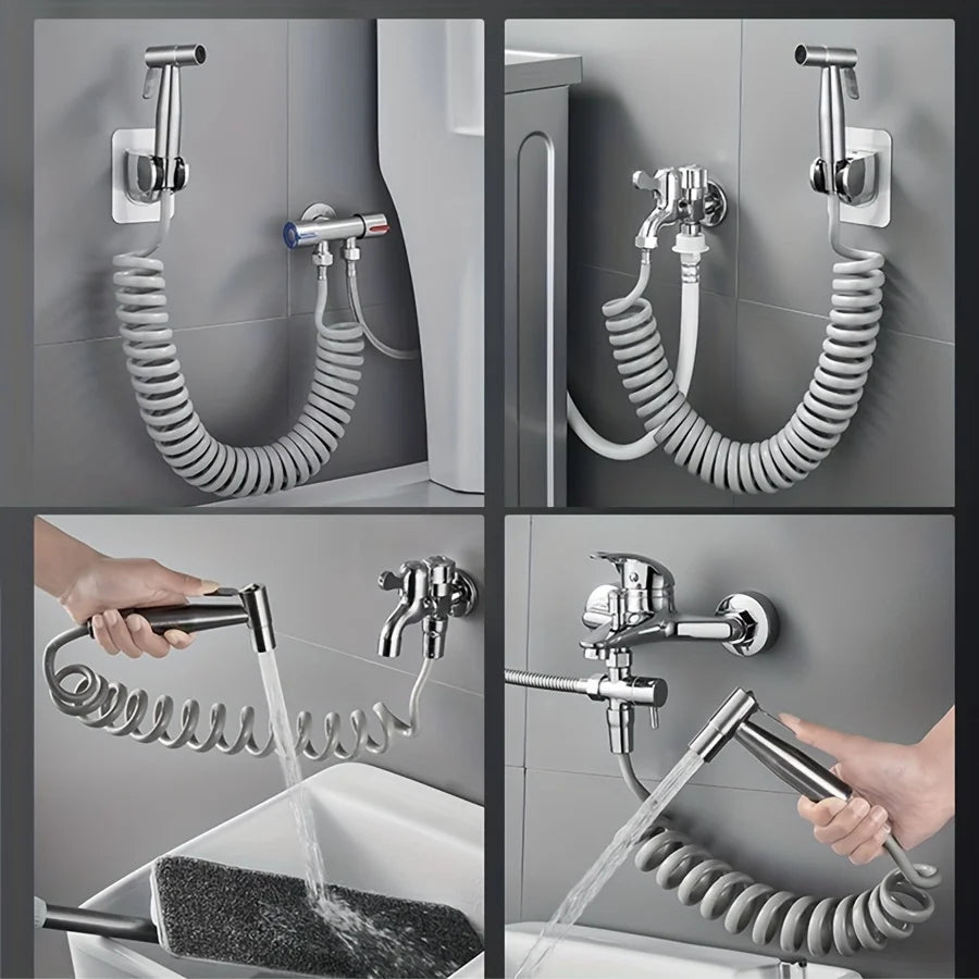 Toilet Bidet Sprayer Gun Set Bathroom Toilet Flusher Stainless Steel Bidet Faucet E Section 1.5Meters Telephone Line Tube with Hook Base Stable Interface