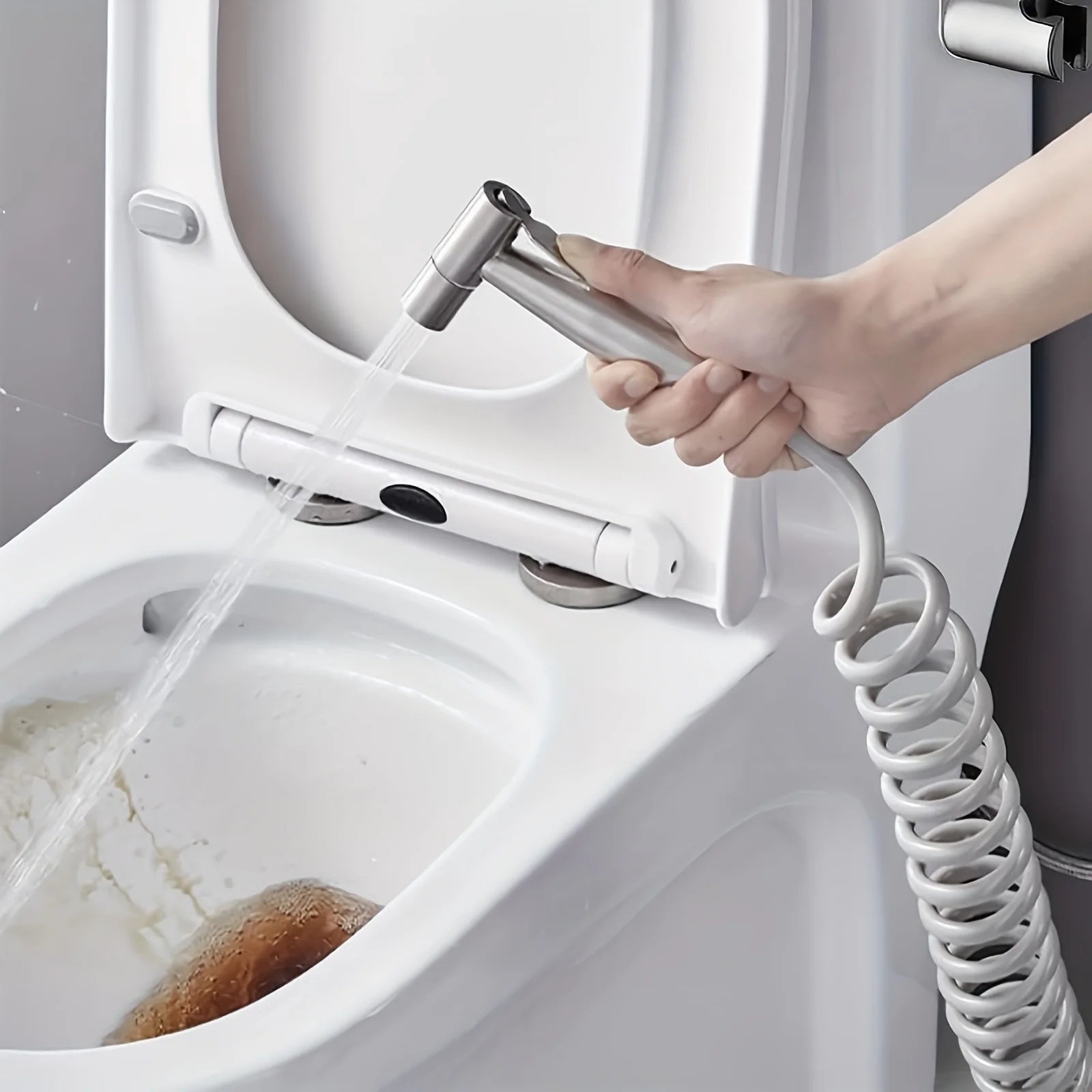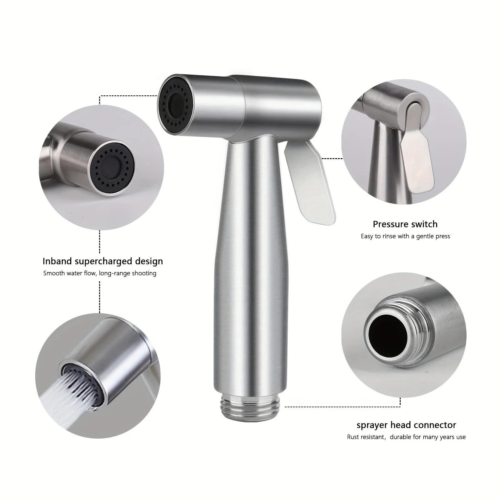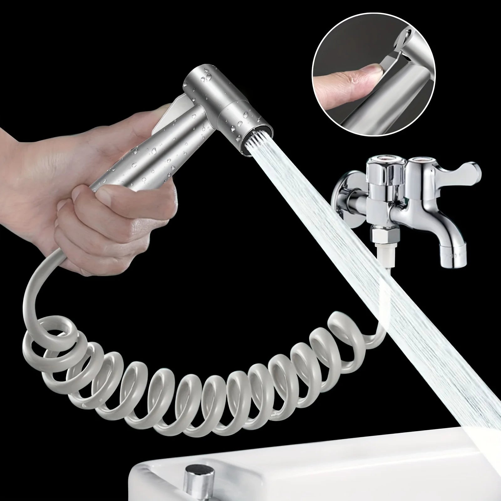 Toilet Bidet Sprayer Gun Set Bathroom Toilet Flusher Stainless Steel Bidet Faucet E Section 1.5Meters Telephone Line Tube with Hook Base Stable Interface