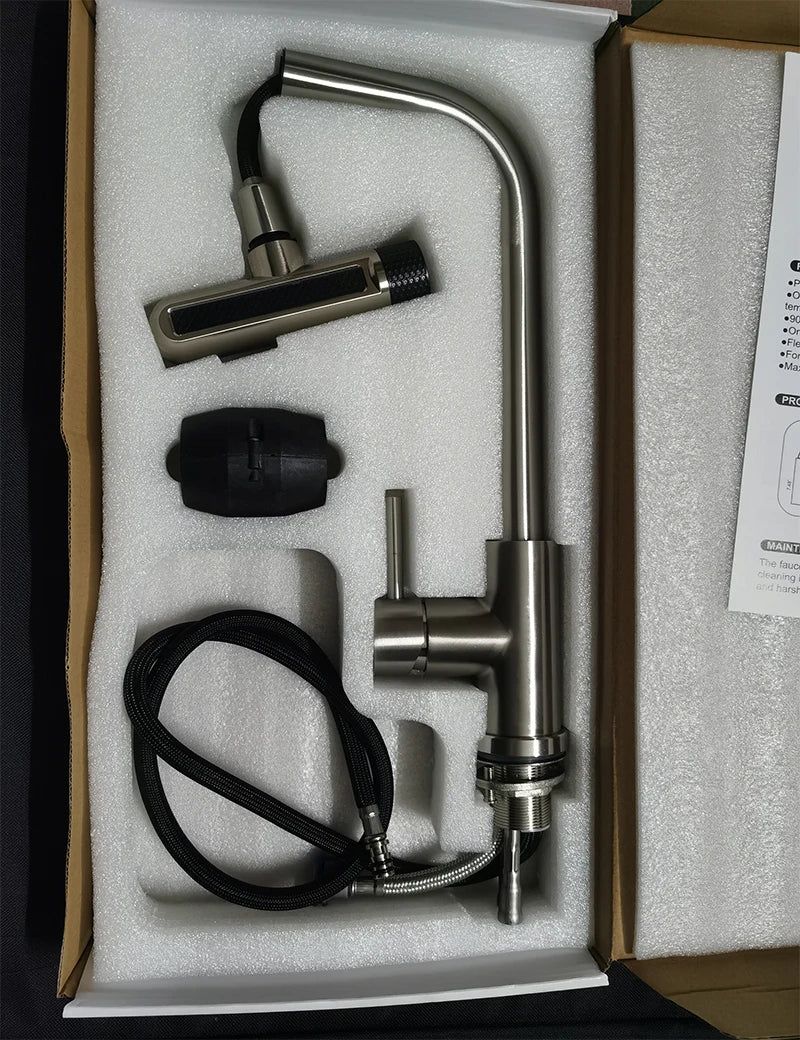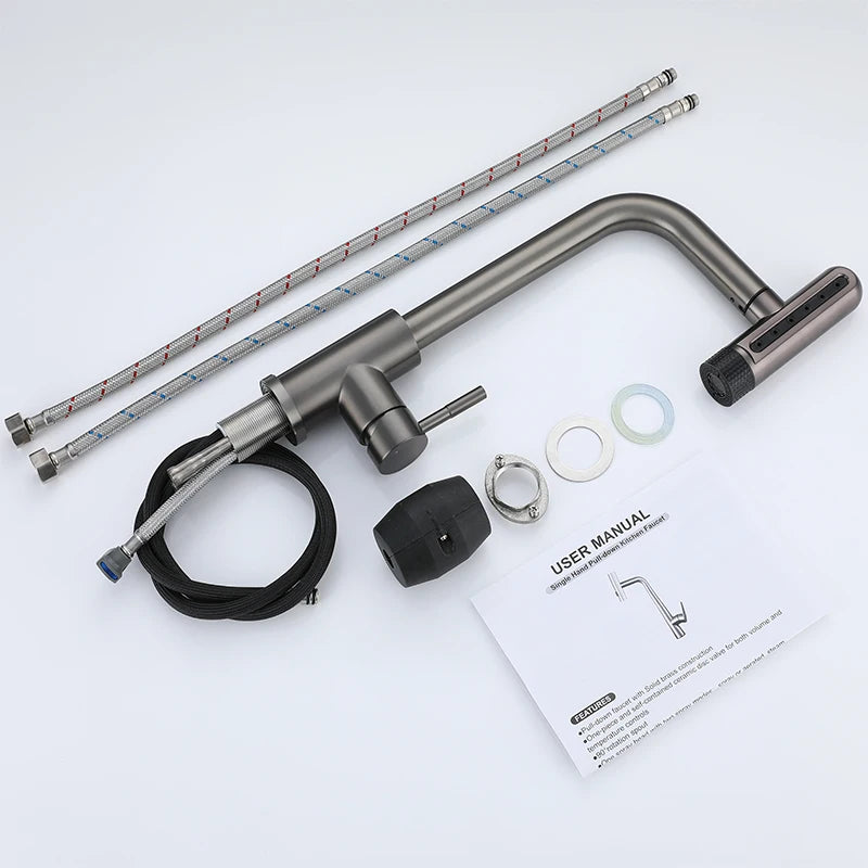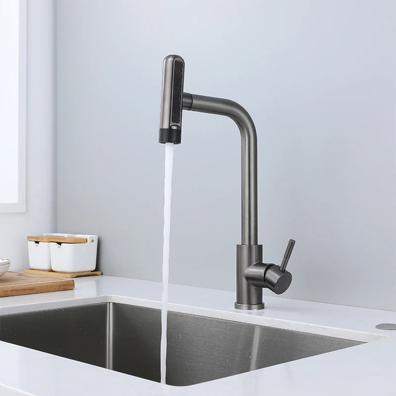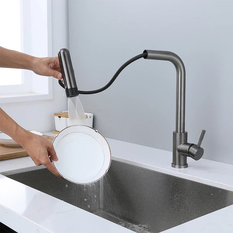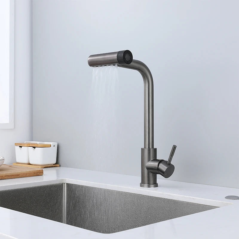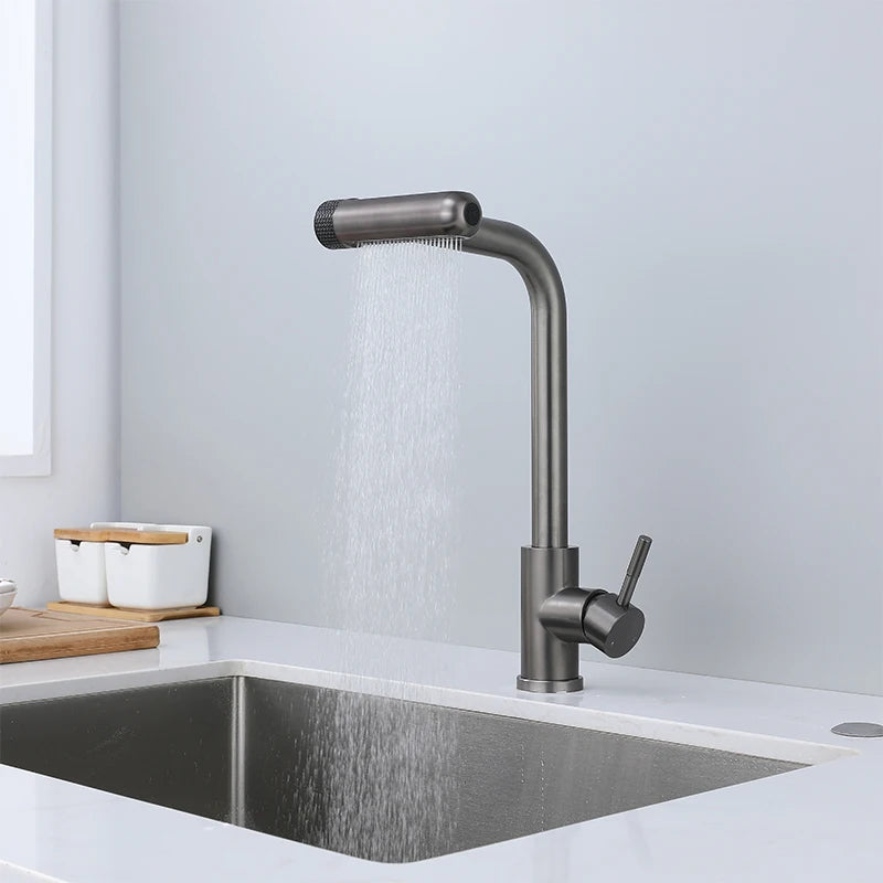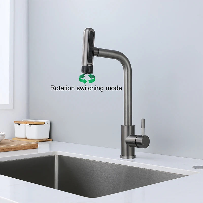 Pull Out Rotation Waterfall Black Stream Sprayer Head,6 Mode Gray Kitchen Faucets, Sink Mixer
