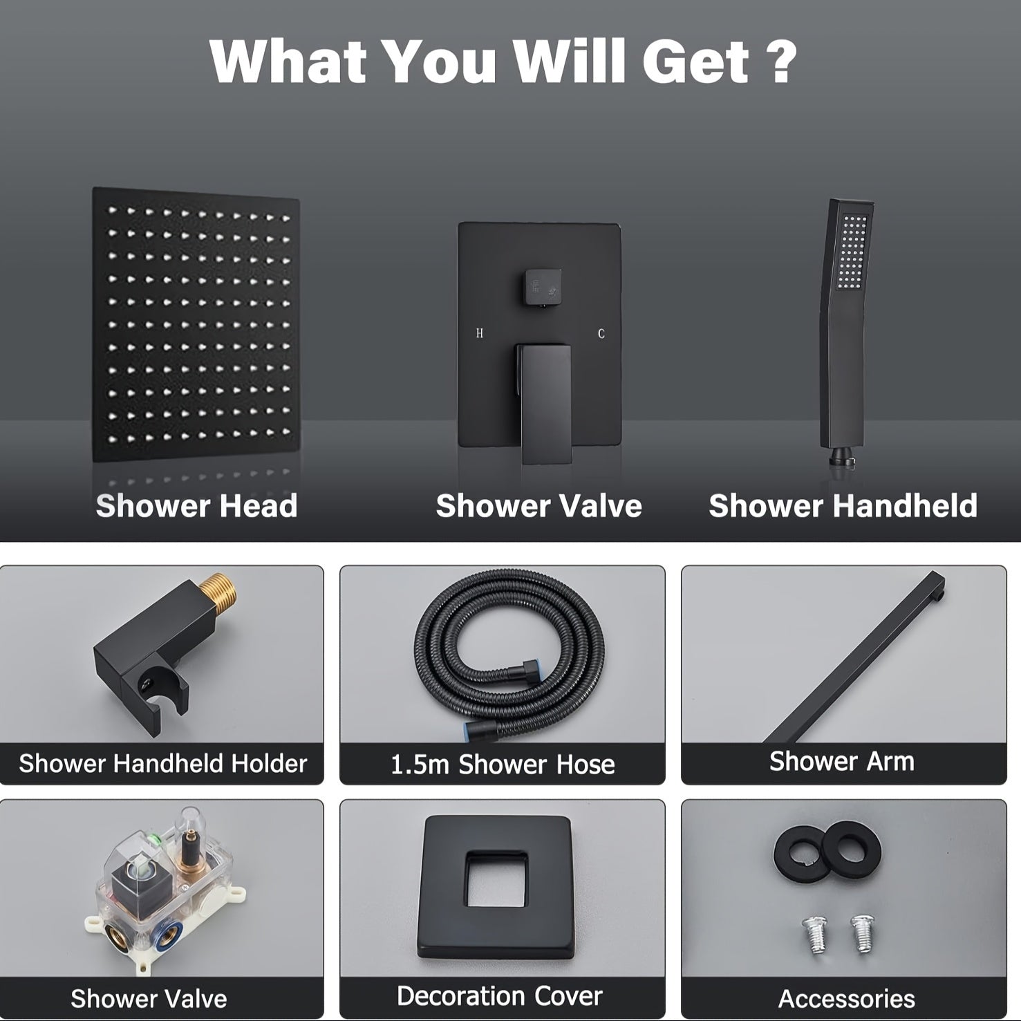 Shower Faucet Set, Copper Shower System with Rain Shower Head and Handheld, Wall Mount Oil Rubbed Finish,