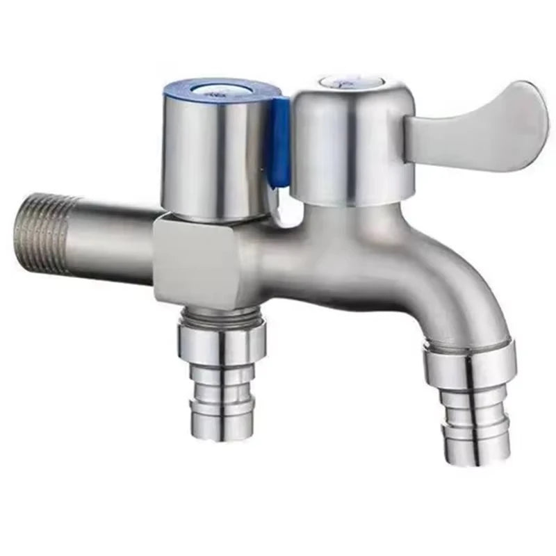Stainless Steel Faucet Double Outlet Dual Control Water Tap One in Two Out Faucet 1/2" Bidet Faucets