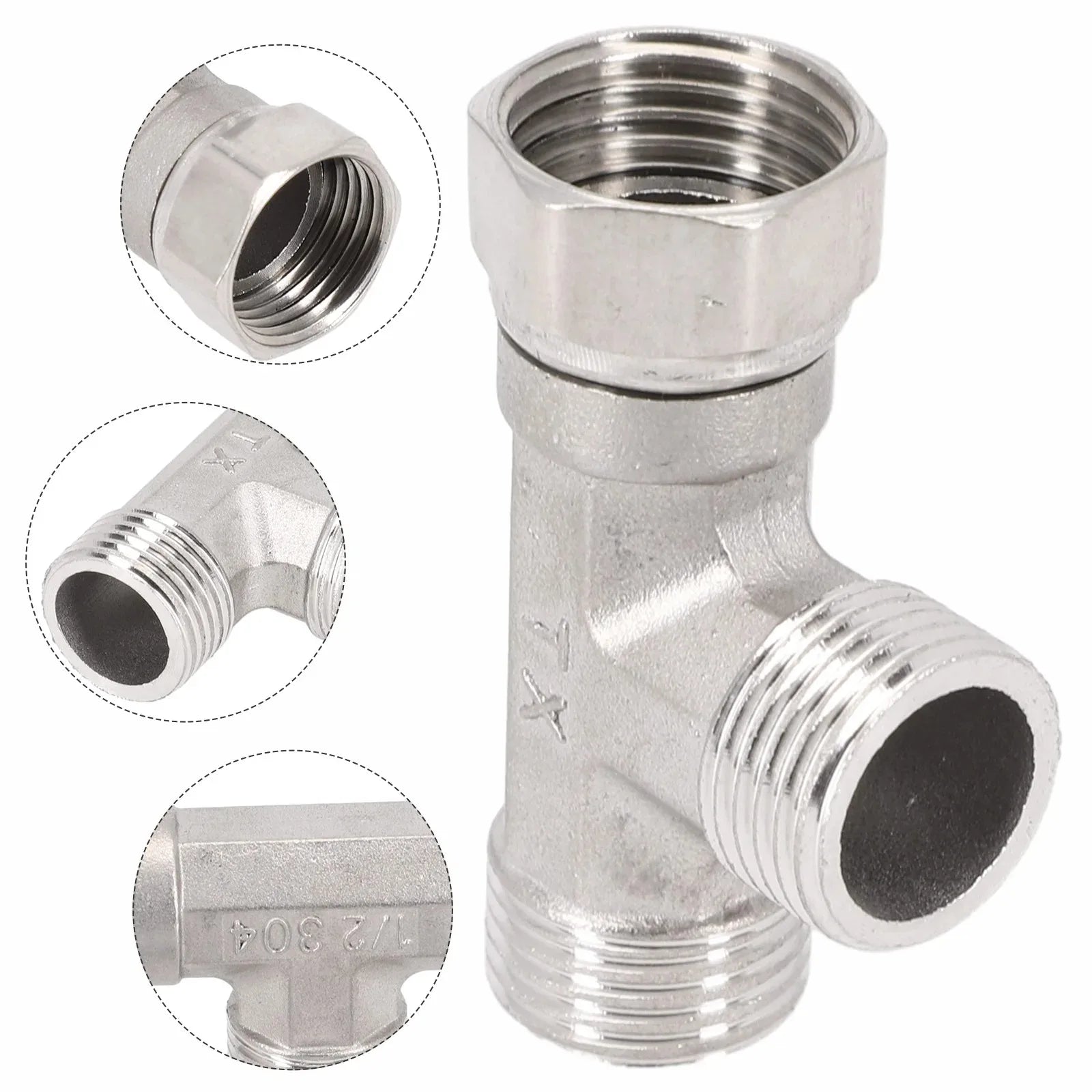 Stainless Steel T Adapter G1/ 2" T-Valve Diverter Valve Three Way Device Hole For Bath Bidet Sprayer Shower