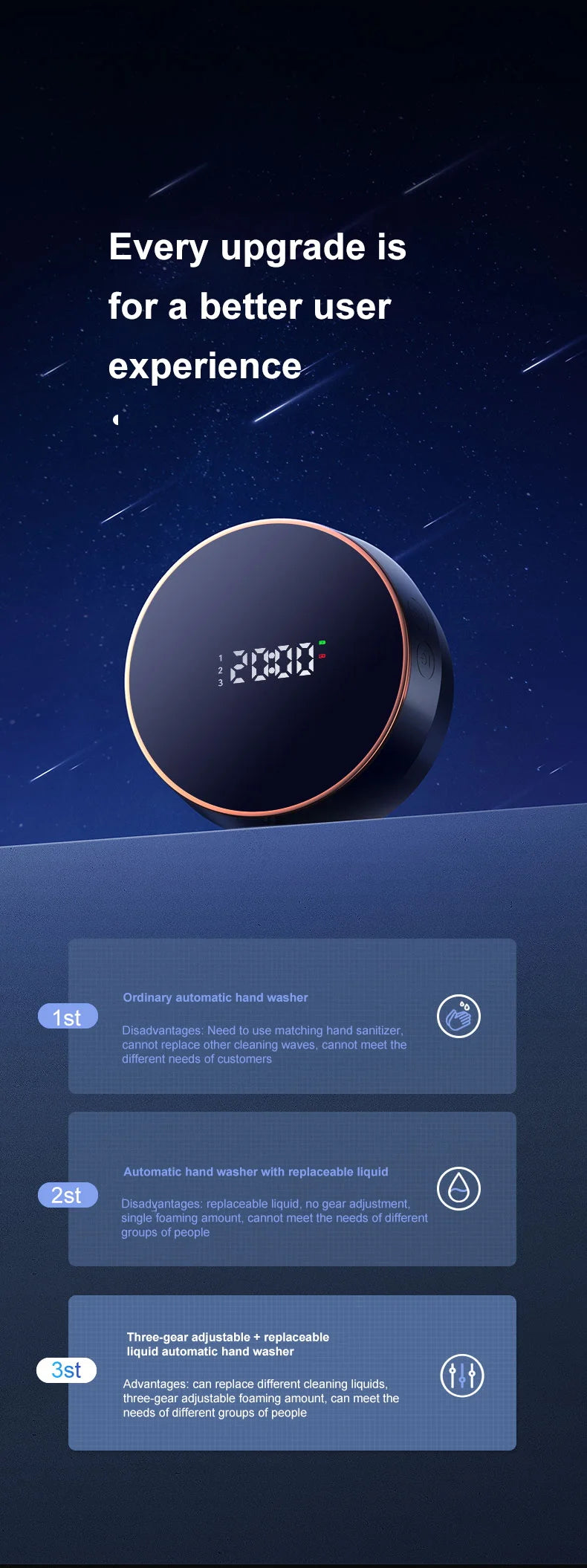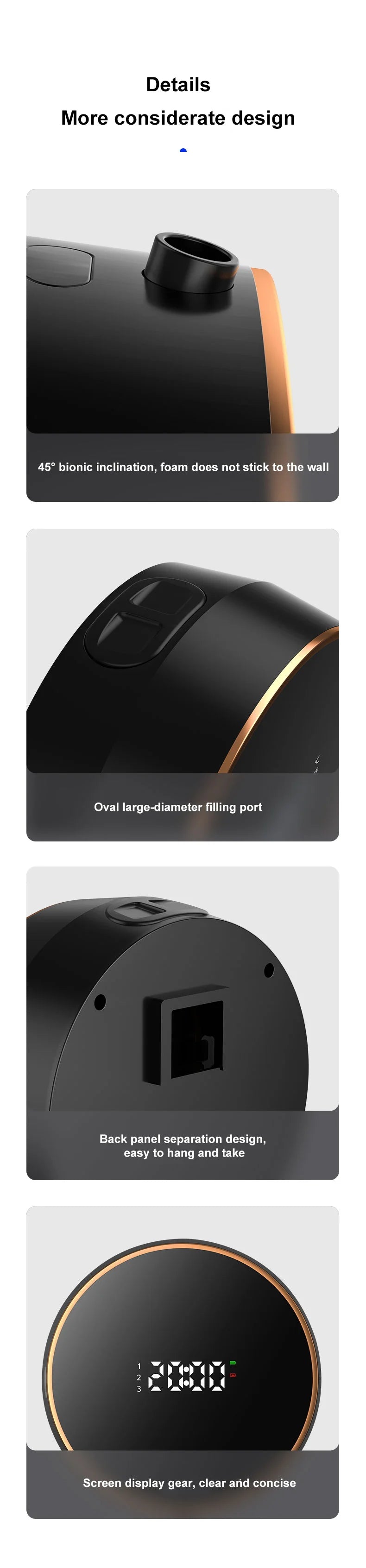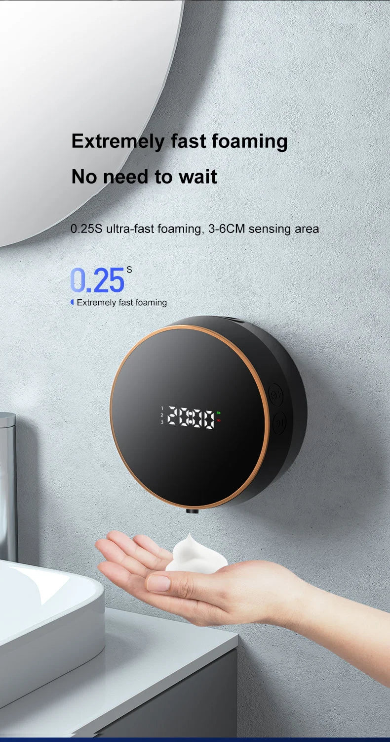 There are three levels to adjust the amount of foam, which can meet the different needs of adults and children of 0.6s,1s,1.5s.It can be displayed in full screen, showing the remaining power and indoor temperature.