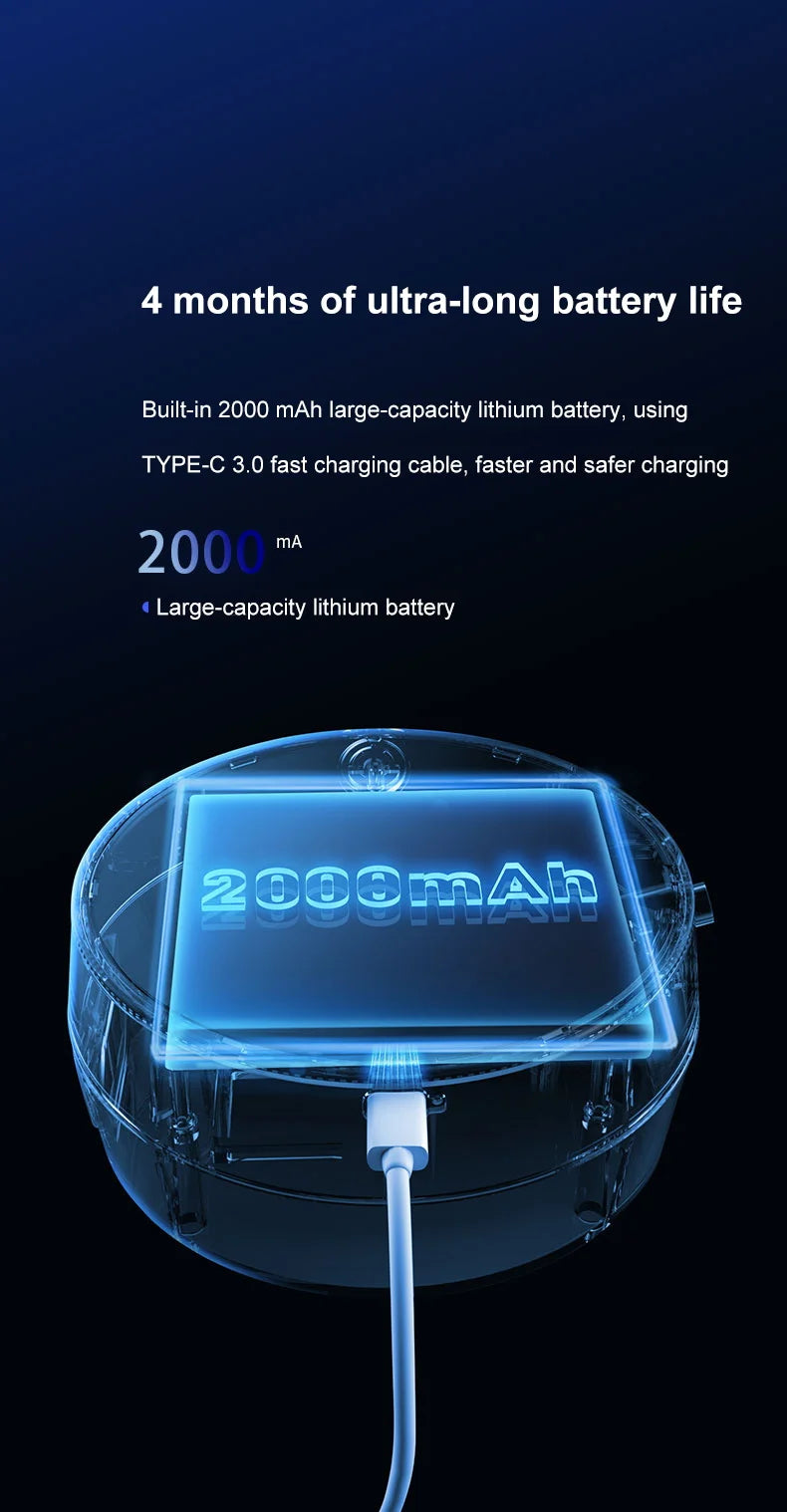 Charge once, use up to 10800 times, 2000mAh large capacity lithium battery, long standby time up to 3-6 months.