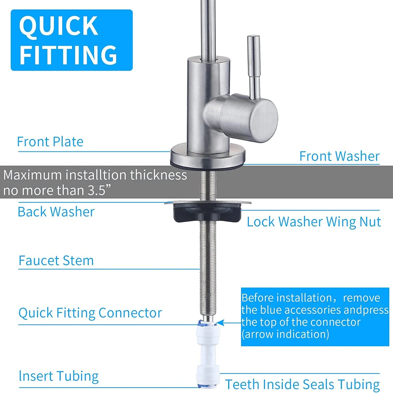 The filter water faucet is made of lead-free as a whole,so the water dispenser faucet is unlikely to get rust, corrosion, and tarnishing during everyday use. the surface is scratch-resistant,oil-free,and easier to clean, ensuring both high-quality and longevity.Best choice for family healthy especially kids.