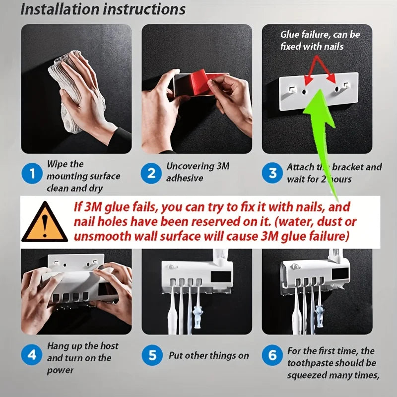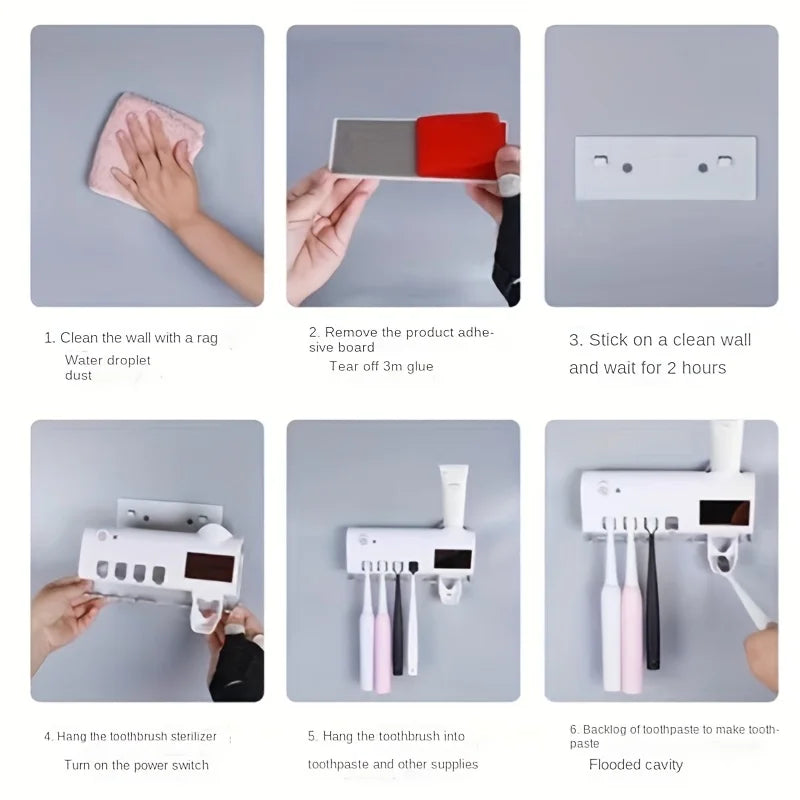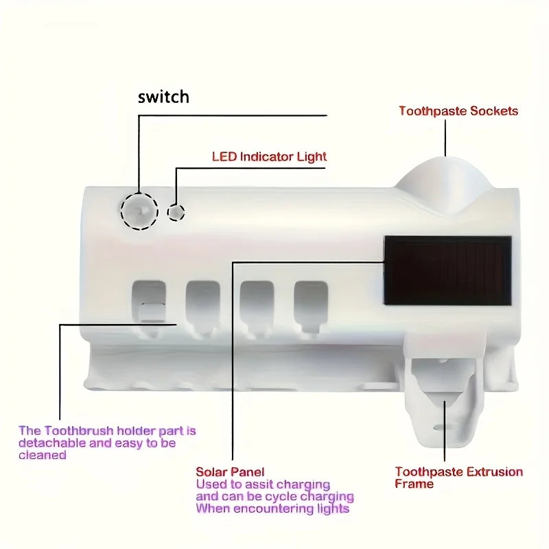 White Smart Toothbrush Holder Auto Dispenser USB Charging Wall Mount