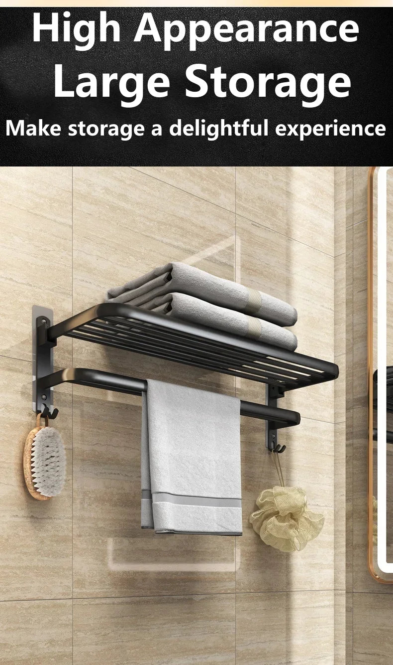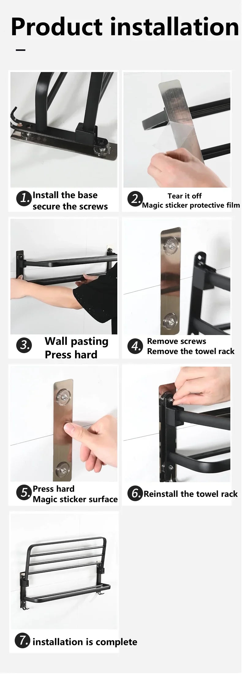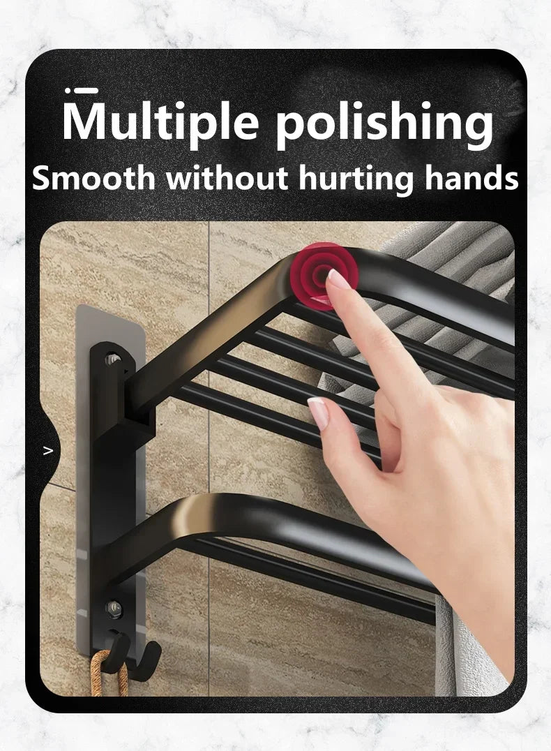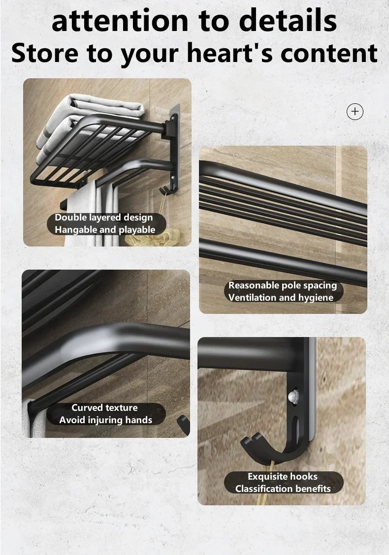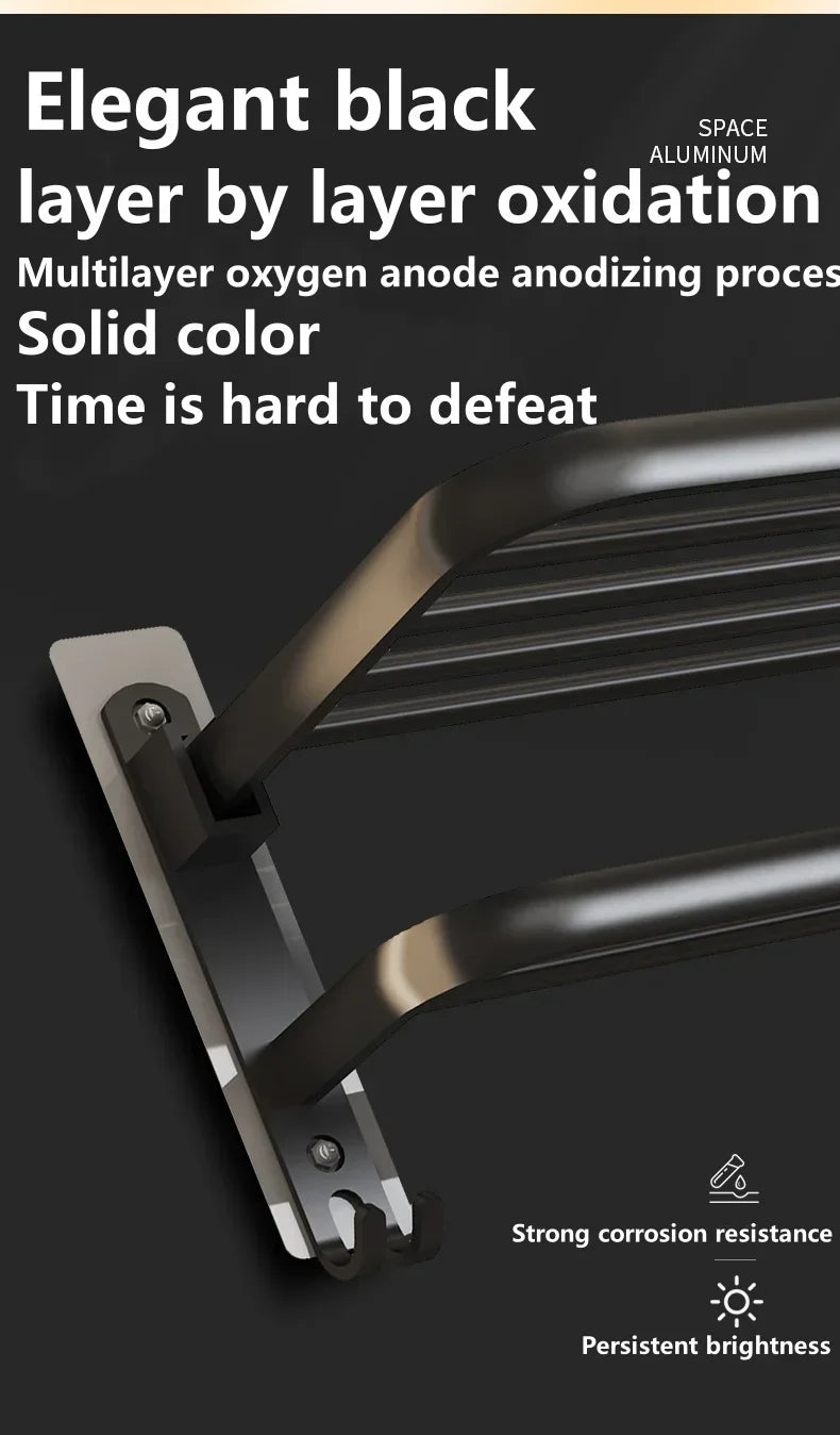 ZEXEF 1/2 Layer Bathroom and Shower Accessories for Bath Towel Rack Organizer Black Drilling Movable Non Aluminum Wall Mounted
