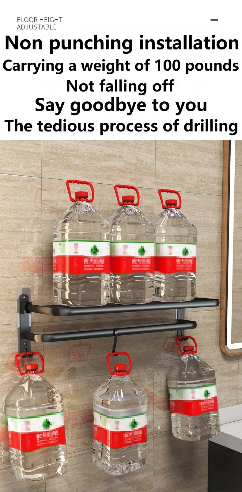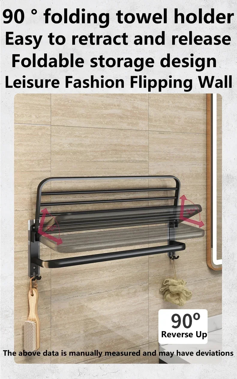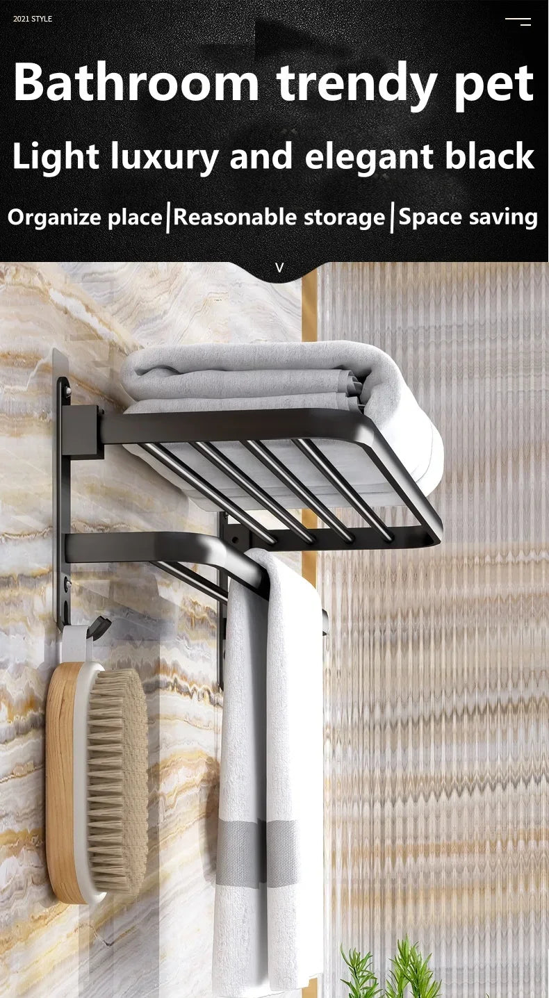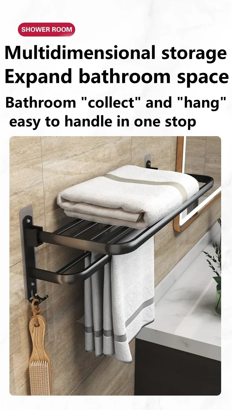ZEXEF 1/2 Layer Bathroom and Shower Accessories for Bath Towel Rack Organizer Black Drilling Movable Non Aluminum Wall Mounted