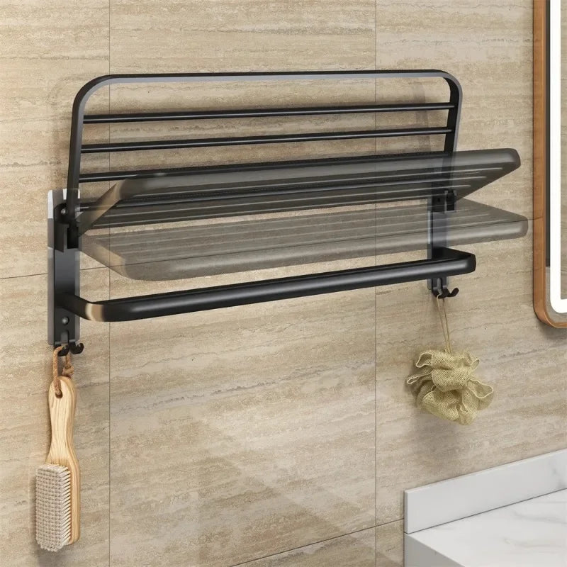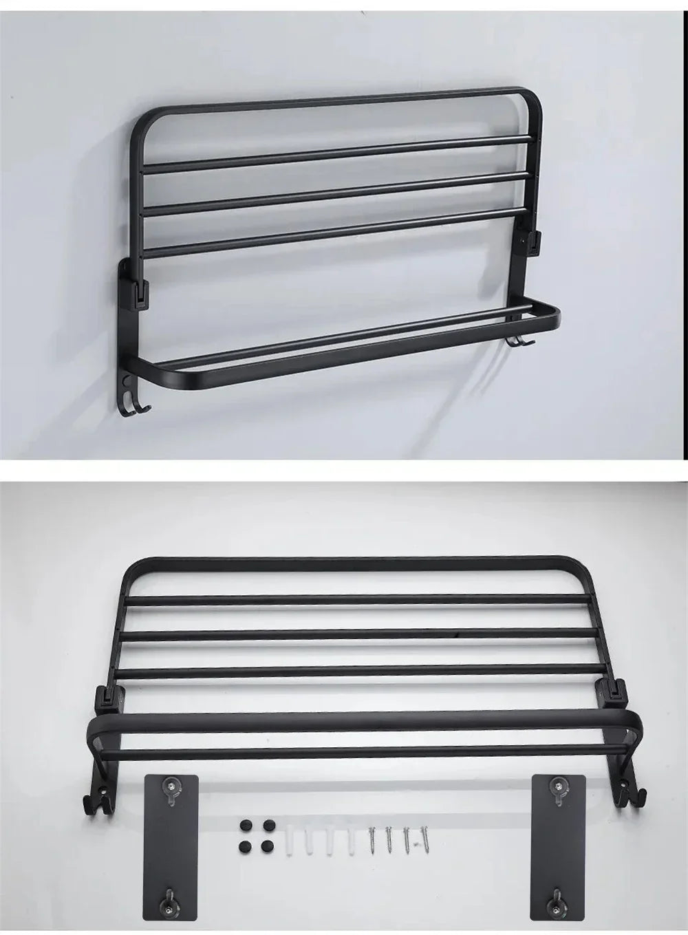 ZEXEF 1/2 Layer Bathroom and Shower Accessories for Bath Towel Rack Organizer Black Drilling Movable